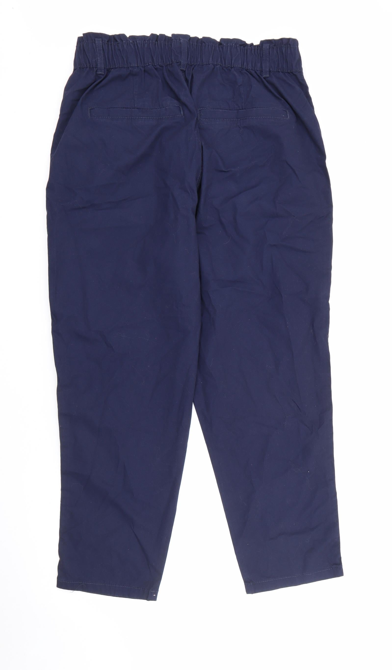Womens Blue Cotton Trousers Size 16 L26 in Regular Button