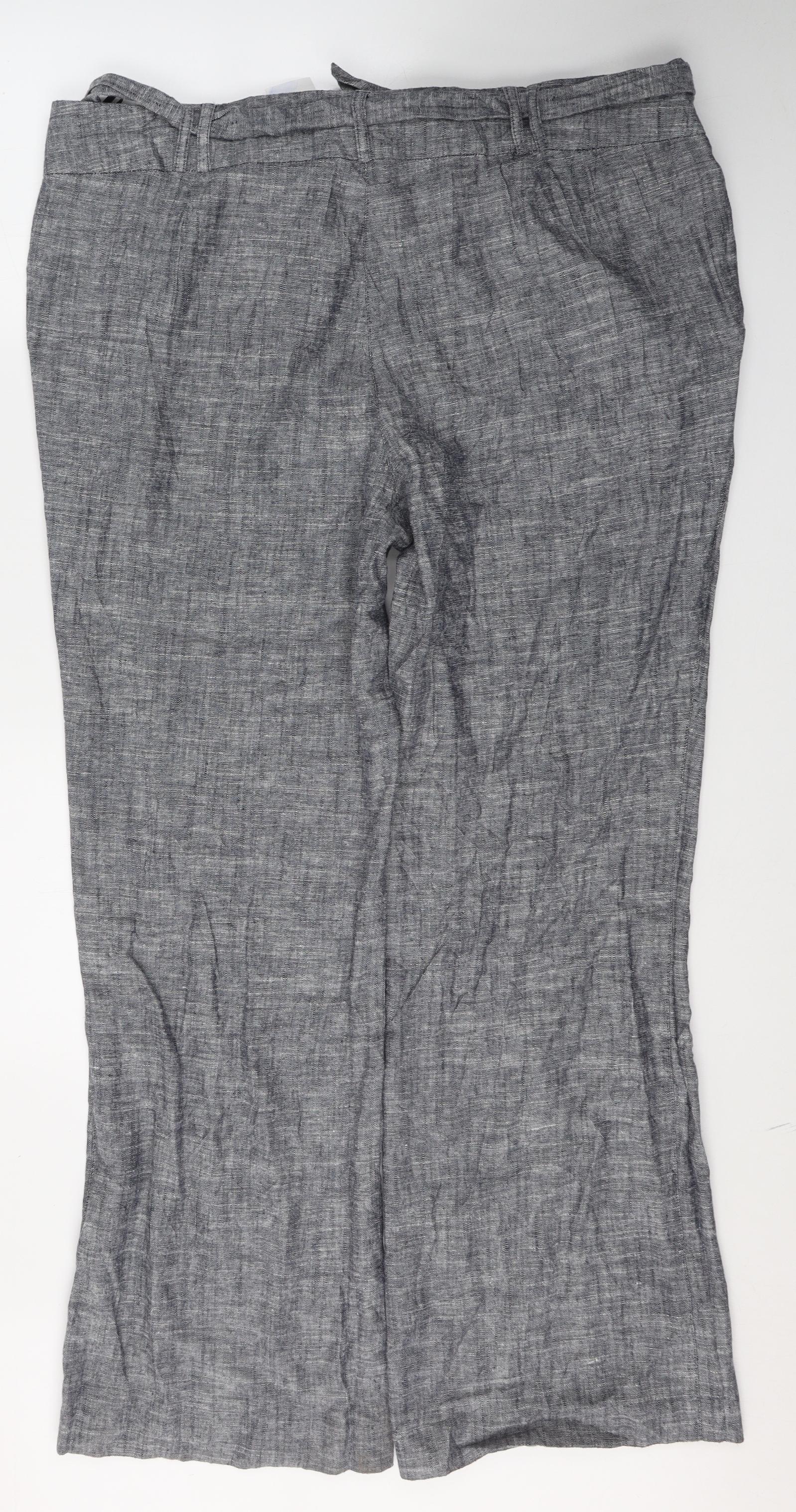 Womens Blue Linen Trousers Size 18 L30 in Regular Button