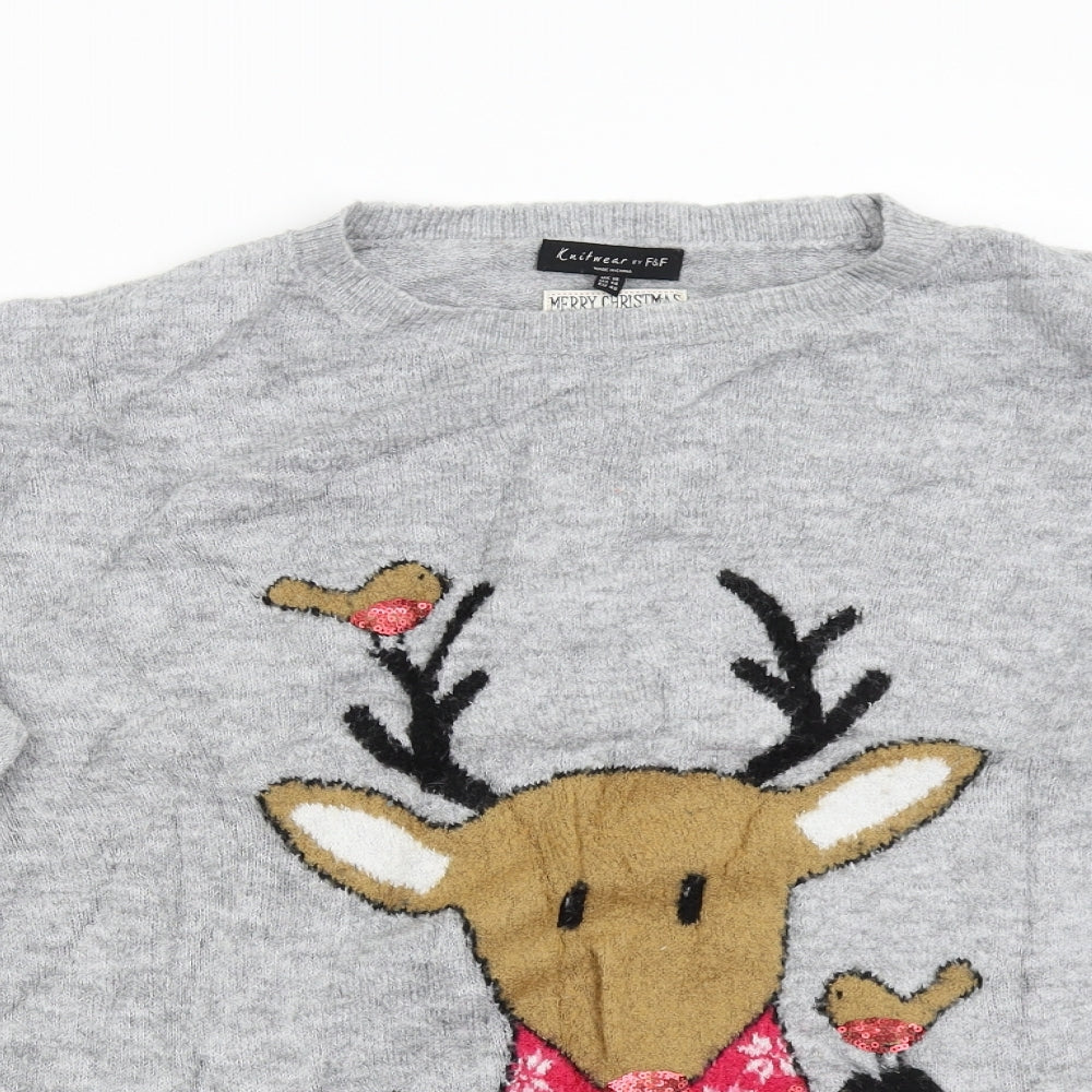 Womens Grey Knit Pullover Jumper Size 18 - Christmas Reindeer