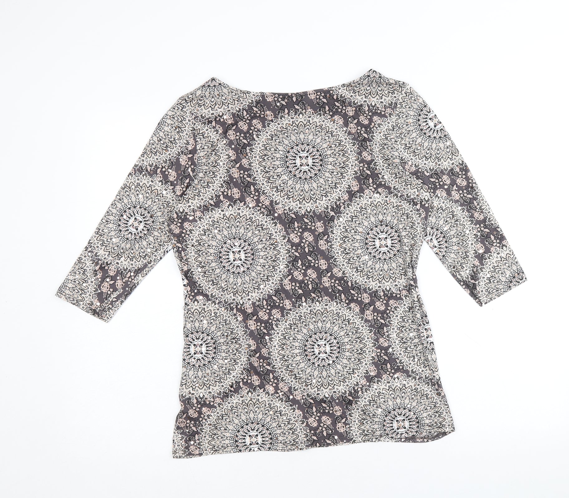 Womens Multicoloured Geometric Polyester Basic Blouse Size 10 Boat Neck - Twist Detail