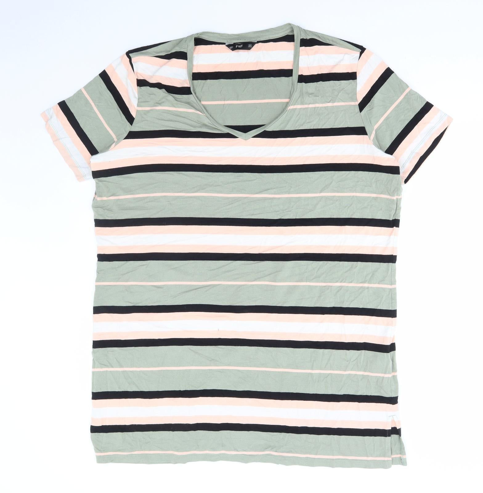 Womens Multicoloured Striped Viscose Basic T-Shirt Size 20 V-Neck