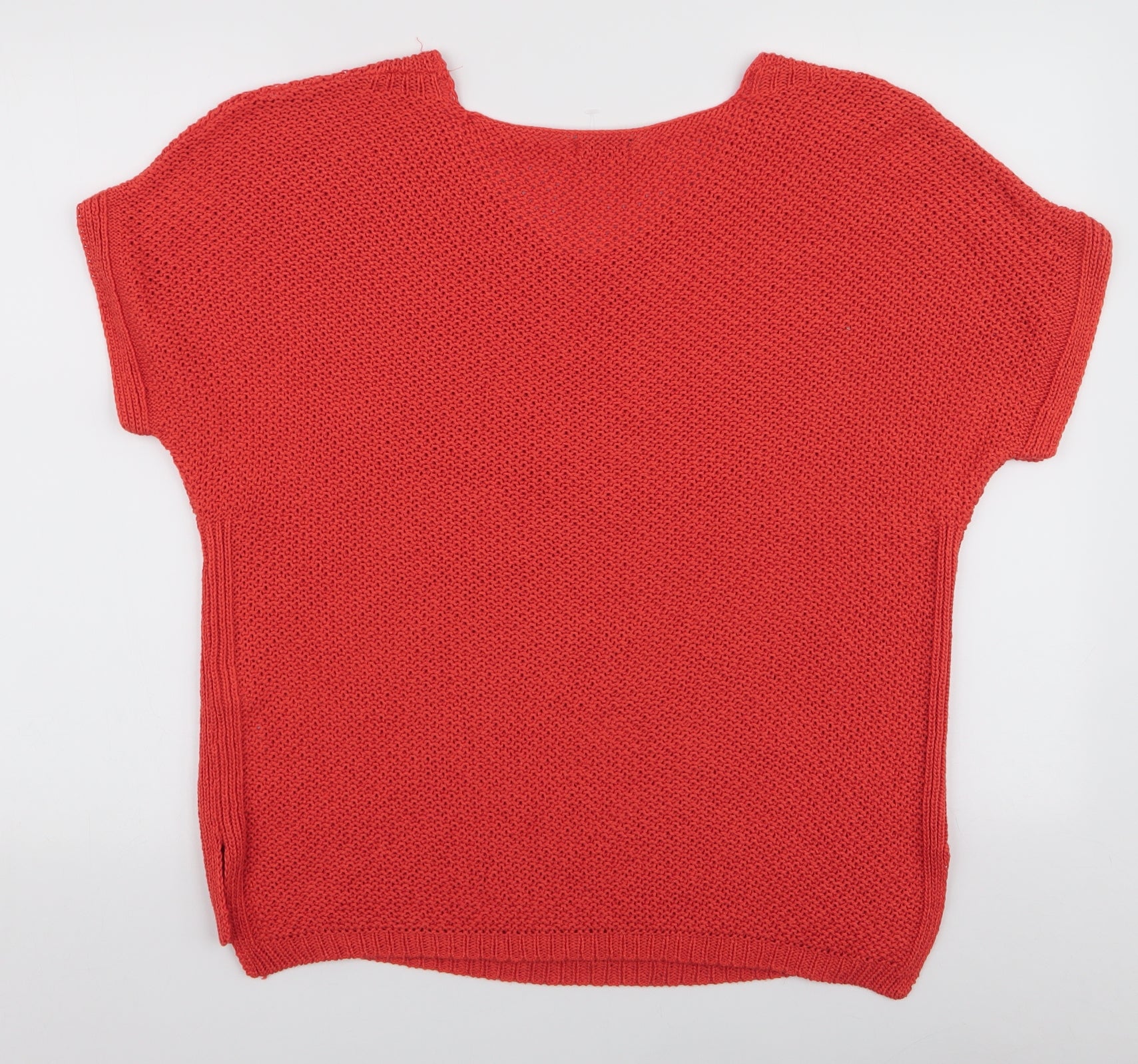 Womens Orange V-Neck Acrylic Pullover Jumper Size 14