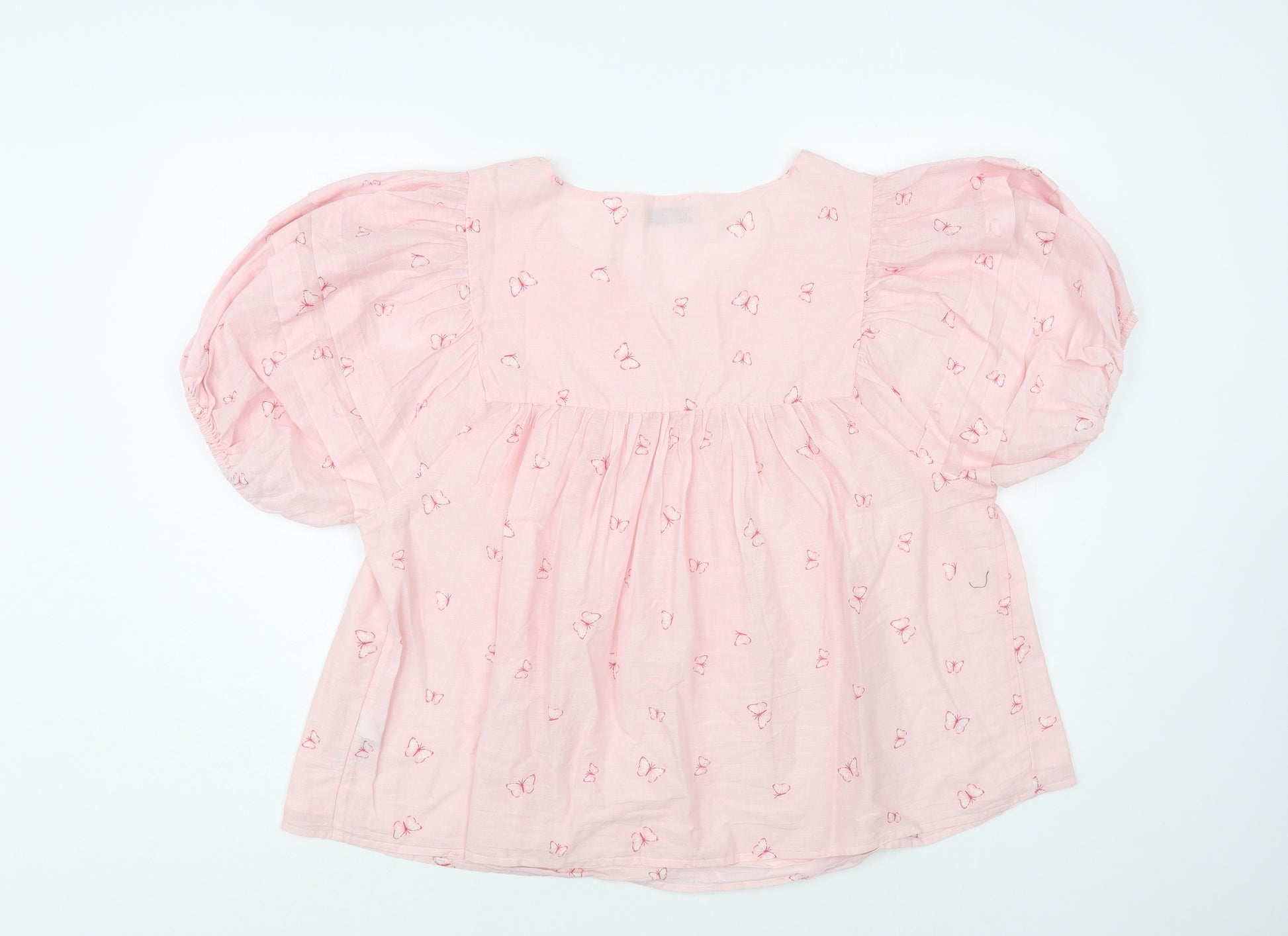Womens Pink Geometric Cotton Basic Blouse Size 18 V-Neck - Butterfly Print
