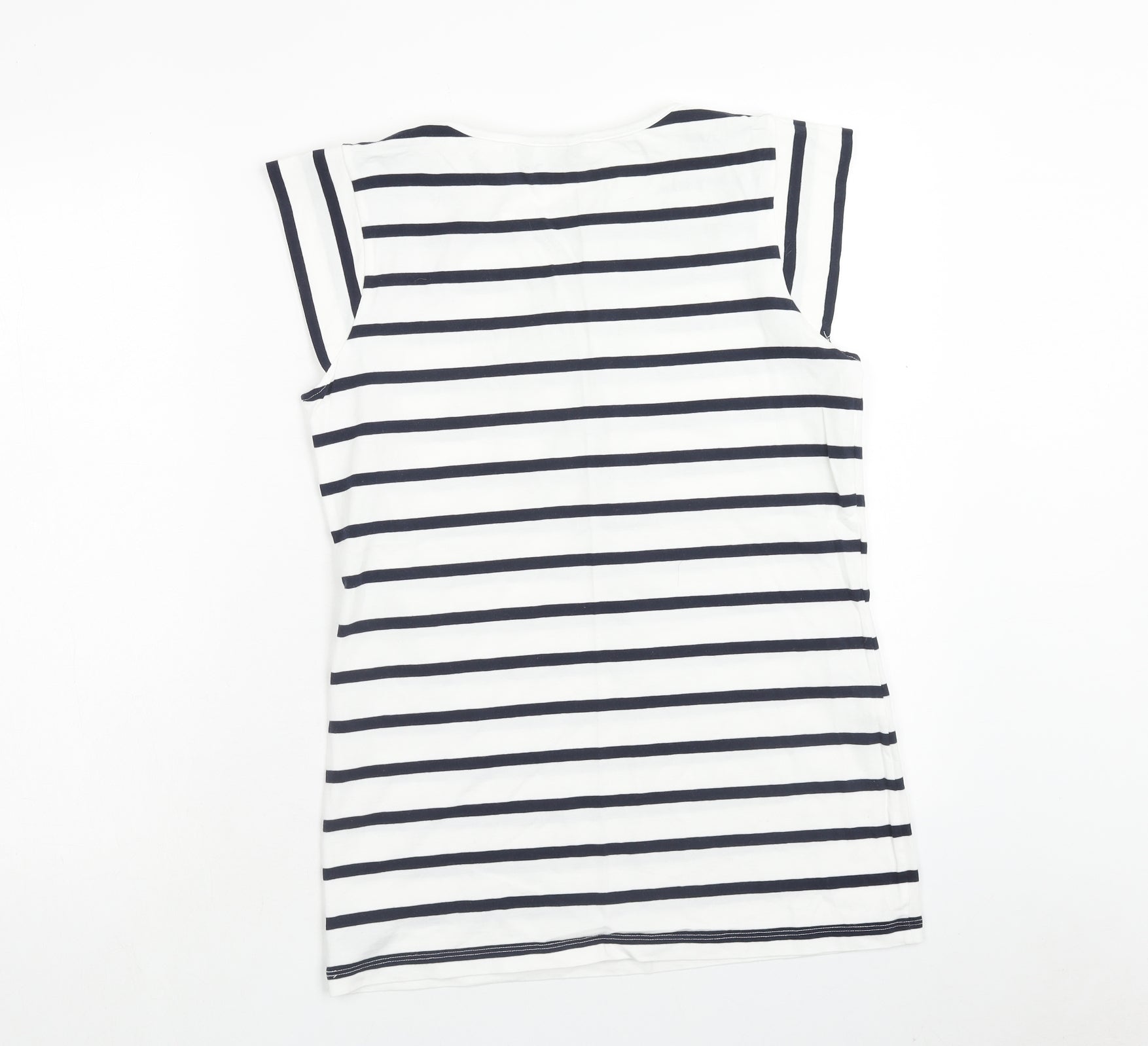Womens White Striped Cotton Basic T-Shirt Size 18 Round Neck
