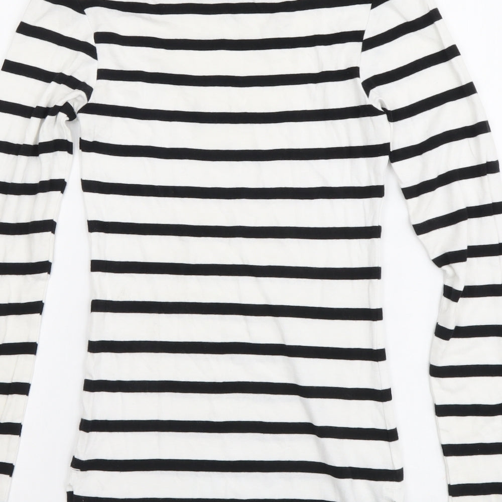Womens White Striped Cotton Basic T-Shirt Size 6 Boat Neck