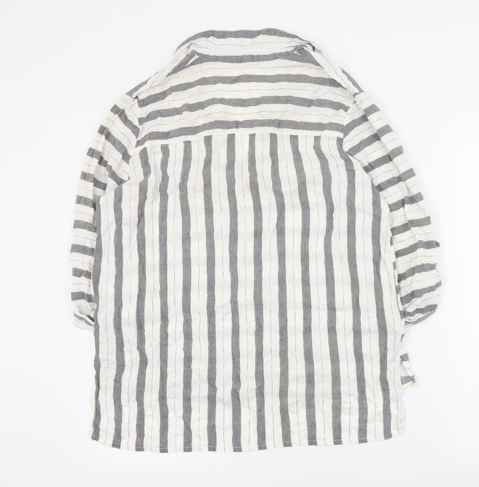 Womens White Striped Viscose Basic Button-Up Size 16 Collared