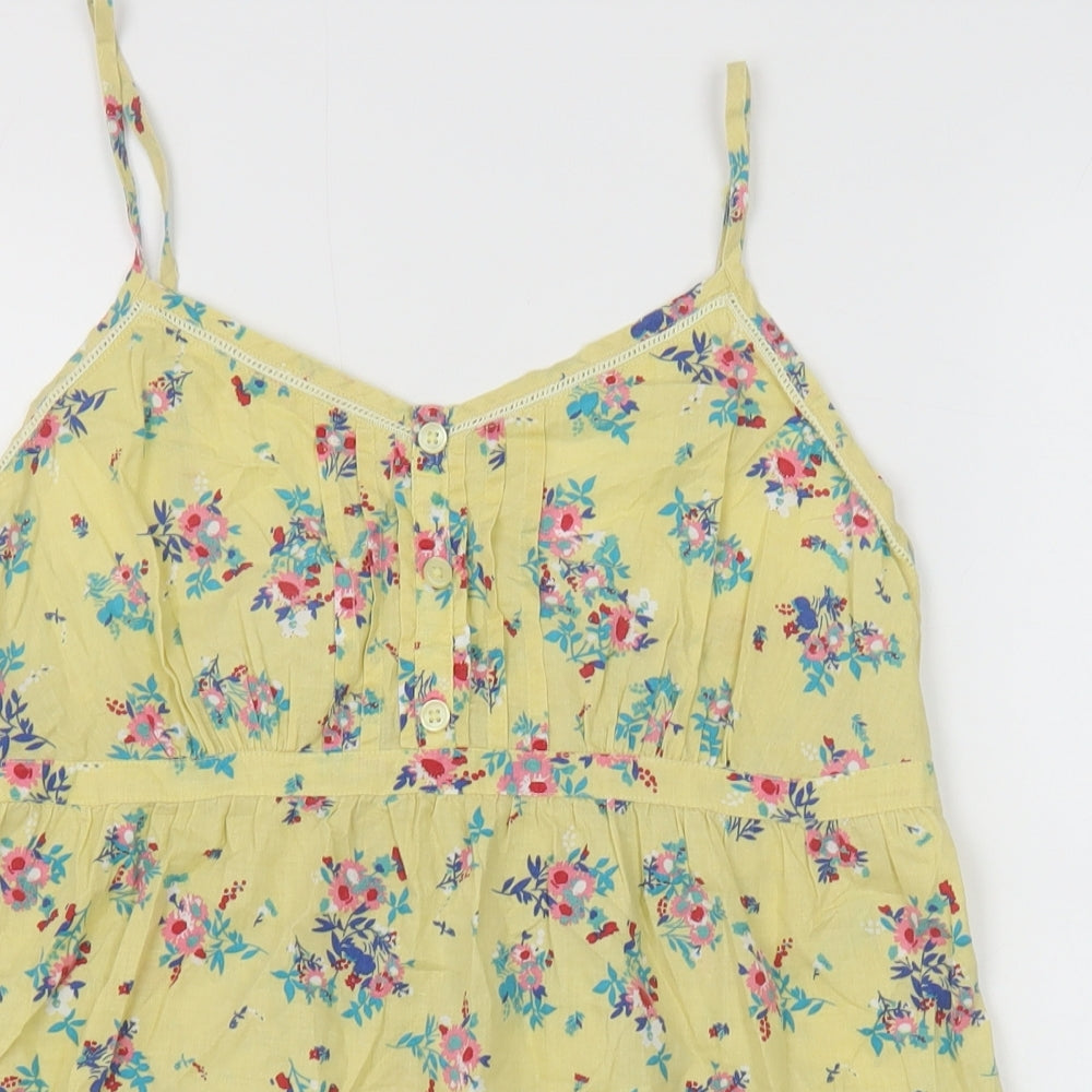 Womens Yellow Floral Cotton Basic Tank Size 12 V-Neck