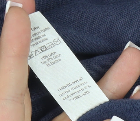 Embrace nostalgic vibes with this F.R.I.E.N.D.S themed sweatshirt, ideal for fans of the iconic TV series. Crafted in a cosy fleece fabric, this sweatshirt ensures comfort and style for both men and women. The blue hue adds a fresh tone to casual wear, while the bold 'I'd Rather Be Watching F.R.I.E.N.D.S' graphic print offers a playful touch. Designed with a convenient 1/4 zip closure at the mock neck, it's easy to slip on and off, making it perfect for any laid-back occasion. Its regular fit provides ease of movement, and the long sleeves keep you warm in cooler conditions. Made from a substantial blend of 97% cotton and 3% elastane, it delivers durability and just the right amount of stretch. Ideal for all seasons, it pairs seamlessly with jeans or joggers for a relaxed ensemble. This machine washable piece is sure to be a favourite go-to in your wardrobe. Whether you're lounging at home or heading out with friends, this sweatshirt is a versatile addition that celebrates a legendary TV show, making it a must-have for any fan.