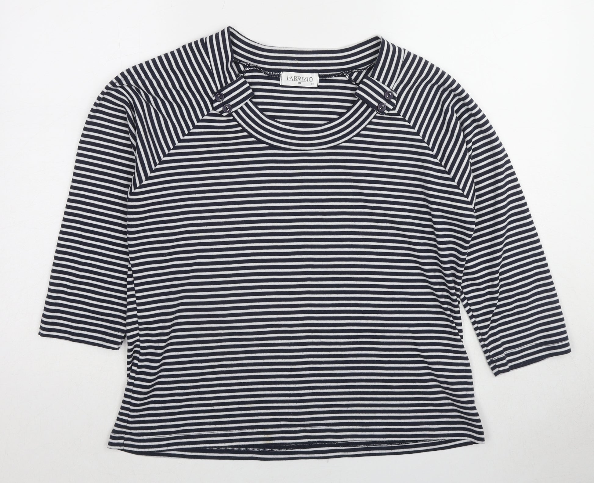 Womens Black Striped Polyester Basic Blouse Size XL Round Neck