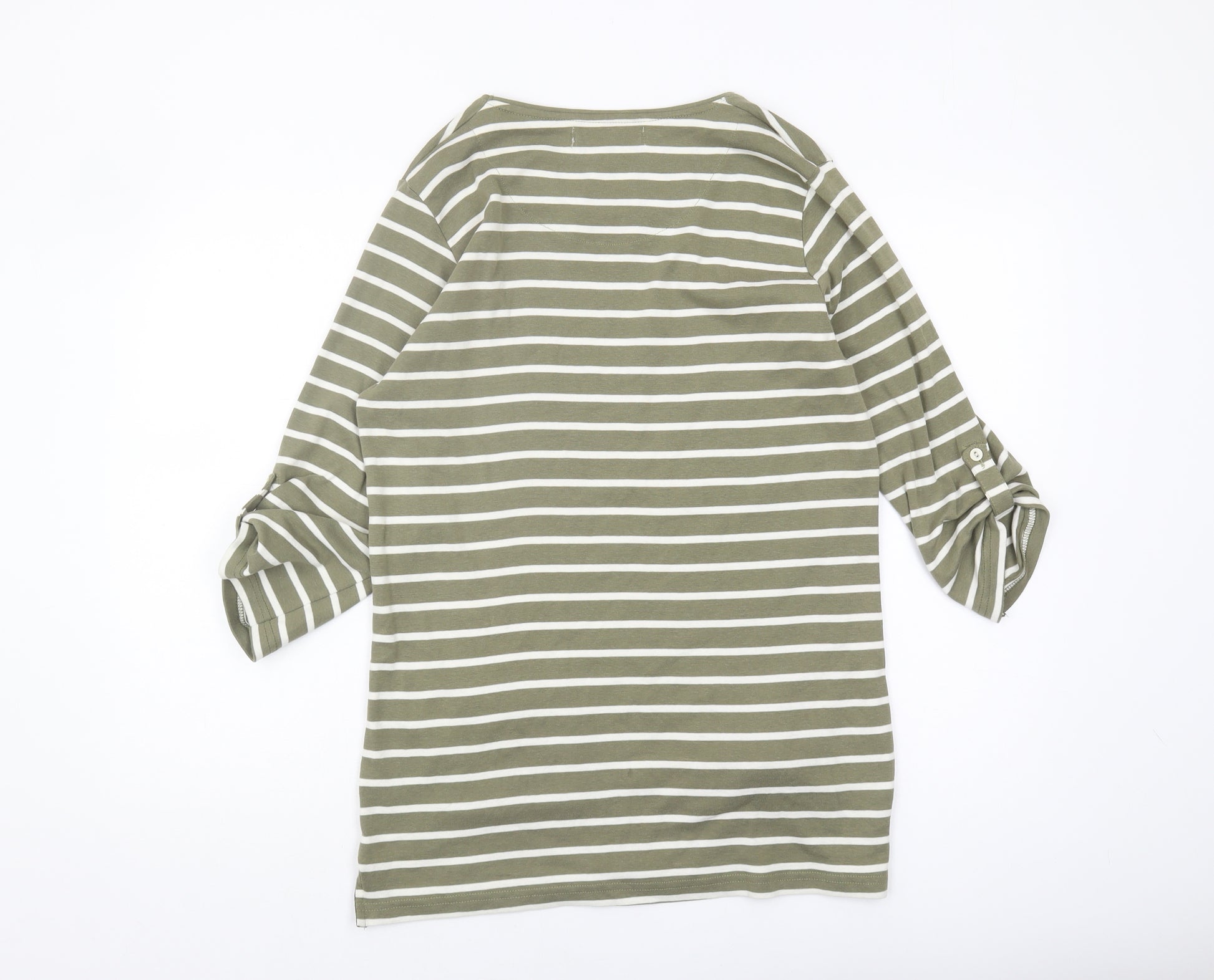 Seasalt Women’s Green White Striped Boat Neck 3/4 Sleeve Cotton Top Size 12