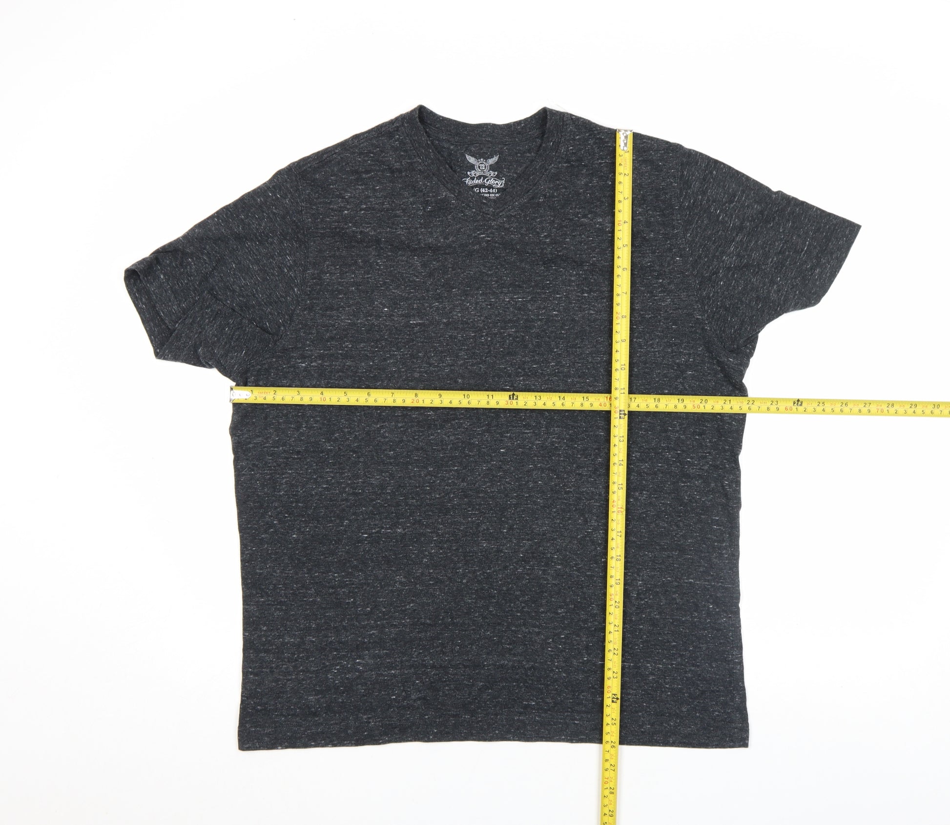 This men's Faded Glory short sleeve T-shirt offers effortless comfort and a timeless casual look. Crafted from a soft and breathable jersey fabric, the mix of 60% cotton and 40% polyester provides a lightweight, durable wear ideally suited for everyday use. The fabric's black heather colour gives it a versatile appeal that pairs easily with jeans, shorts, or joggers, making it a great wardrobe staple for relaxed, laid-back outfits. Designed with a classic crew neck and regular fit, this T-shirt ensures comfortable wear without being too tight or too loose. Its understated style features a subtle logo print inside the neckline, adding a touch of authenticity while maintaining a simple look. Practical and easy to care for, this T-shirt can be machine washed with minimal fuss, retaining its softness and comfort with every wear. Although it shows signs of gentle use, including a couple of small marks on the back, it remains in good usable condition with plenty of wear left. Ideal for casual days, lounging, or layering under a jacket, this Faded Glory tee delivers great value and timeless appeal. Perfect for those who prefer their wardrobe essentials to be low-maintenance, versatile, and comfortable, it’s a reliable choice for spring and summer wear. A great option for men looking for high comfort and quality at an affordable price.