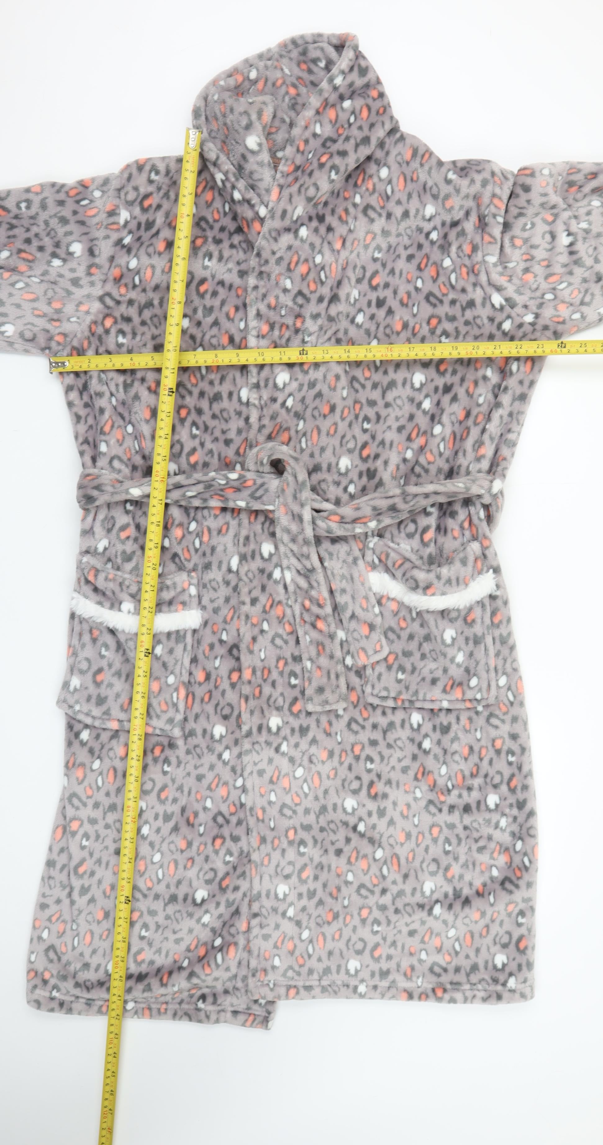 Womens Grey Animal Print Fleece Belted Robe M