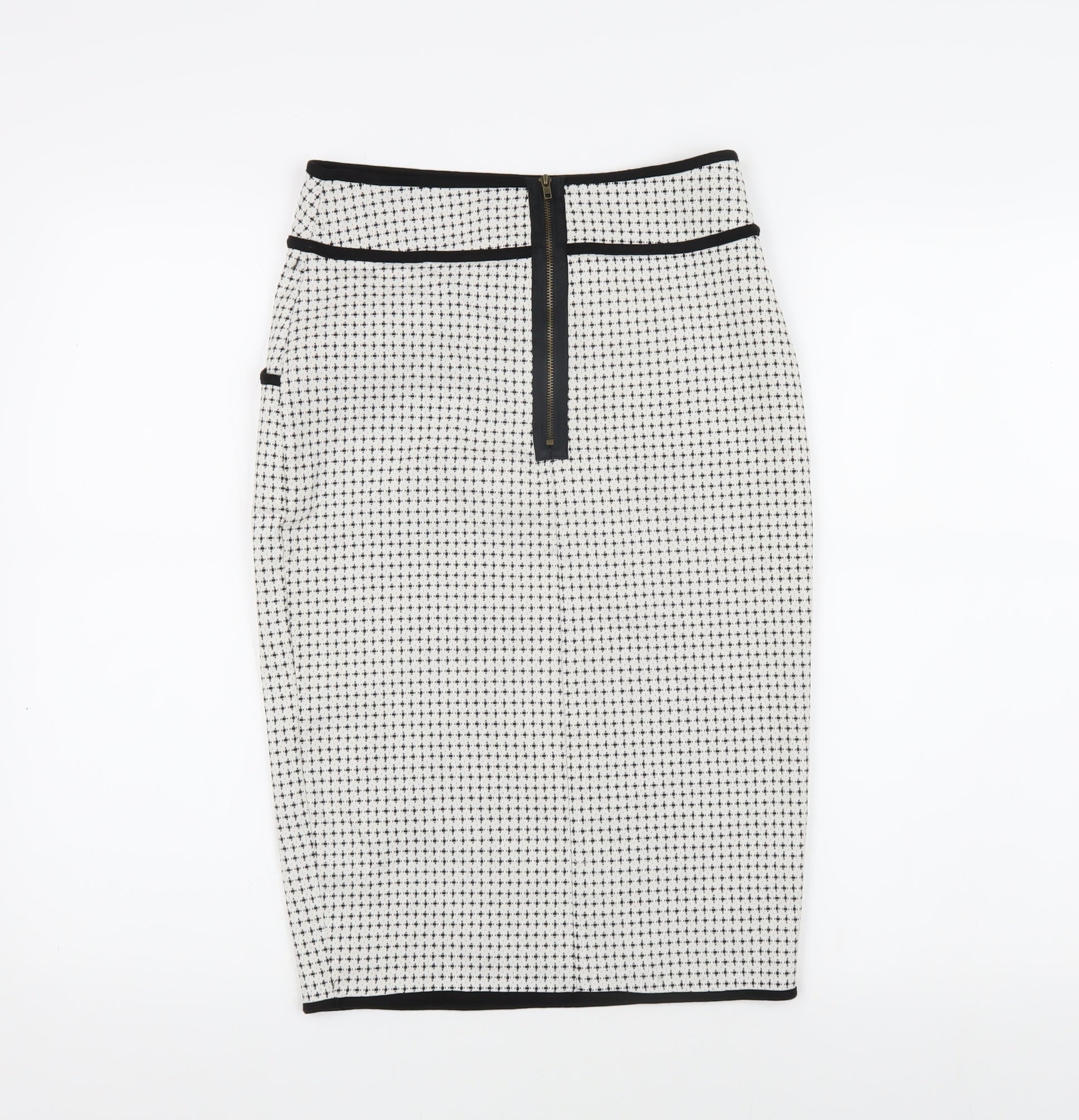 Elevate your style with this chic 'faith and joy' pencil skirt, perfect for fashion-forward women seeking a blend of comfort and sophistication. Crafted in a small size, this wardrobe essential features a multicoloured geometric pattern that adds a modern twist to classic elegance. The skirt's structure is designed for a sleek, body-hugging fit that enhances your silhouette, making it suitable for various occasions. Made from a quality blend of 50% Rayon, 35% Polyester, 11% Nylon, and 4% Spandex, it offers just the right amount of stretch for a comfortable wear, while the zip accent adds a touch of edge. Although in excellent condition with no visible flaws, the skirt combines style with practicality, requiring only hand wash care. Pair it with a tailored blouse for a polished office look or a casual top for a night out. Available at an accessible price, this versatile skirt will surely become a staple in your collection. Don't miss the chance to own a piece that perfectly balances modernity and timeless design.