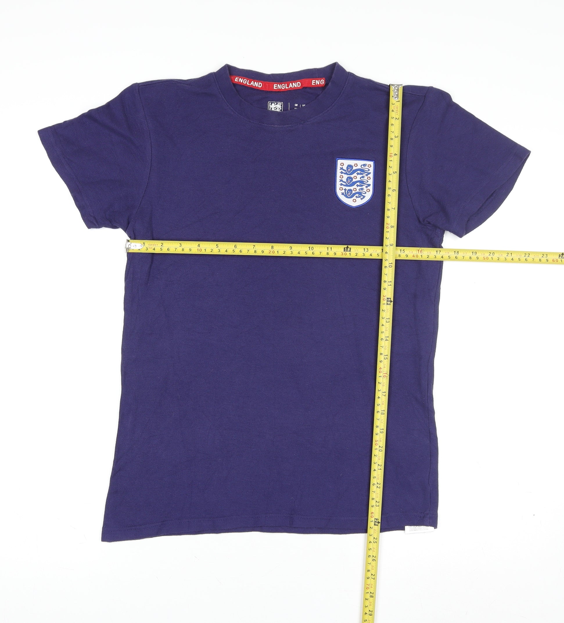 Show your support for the Three Lions with this official Fanatics England men's T-shirt in a rich blue tone. Crafted from soft, breathable 100% cotton fabric, this comfortable crew neck top delivers an easy-to-wear fit ideal for casual day wear, workouts, or cheering your team on from the stands. The short-sleeve, classic regular fit design ensures unrestricted movement, making it suitable for a variety of activities. The chest showcases the iconic England Football crest, while the inside neckline proudly bears a repeating 'England' print that adds a patriotic touch. Made with durable jersey construction, this top combines lightweight breathability with reliable comfort. Perfect for summer or spring occasions, it provides a timeless sporty look that pairs effortlessly with jeans, joggers, or shorts. Whether you’re watching the match, heading to the gym, or running errands, this shirt is an easy choice for fans who want both comfort and style. The garment is machine washable, providing easy care for everyday wear. In excellent pre-owned condition with only minimal signs of use, it’s a top-quality branded piece that reflects casual sportswear appeal at a fantastic value. Proudly wear your passion for English football in a piece that celebrates national pride while offering dependable comfort and understated style. A must-have for every England supporter looking to update their collection with a reliable and breathable classic cotton tee.
