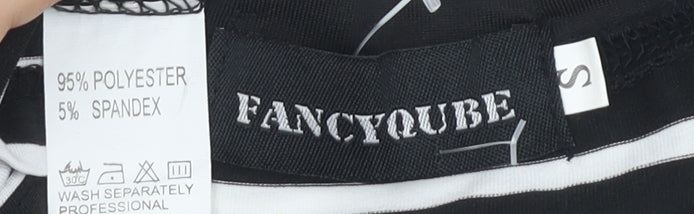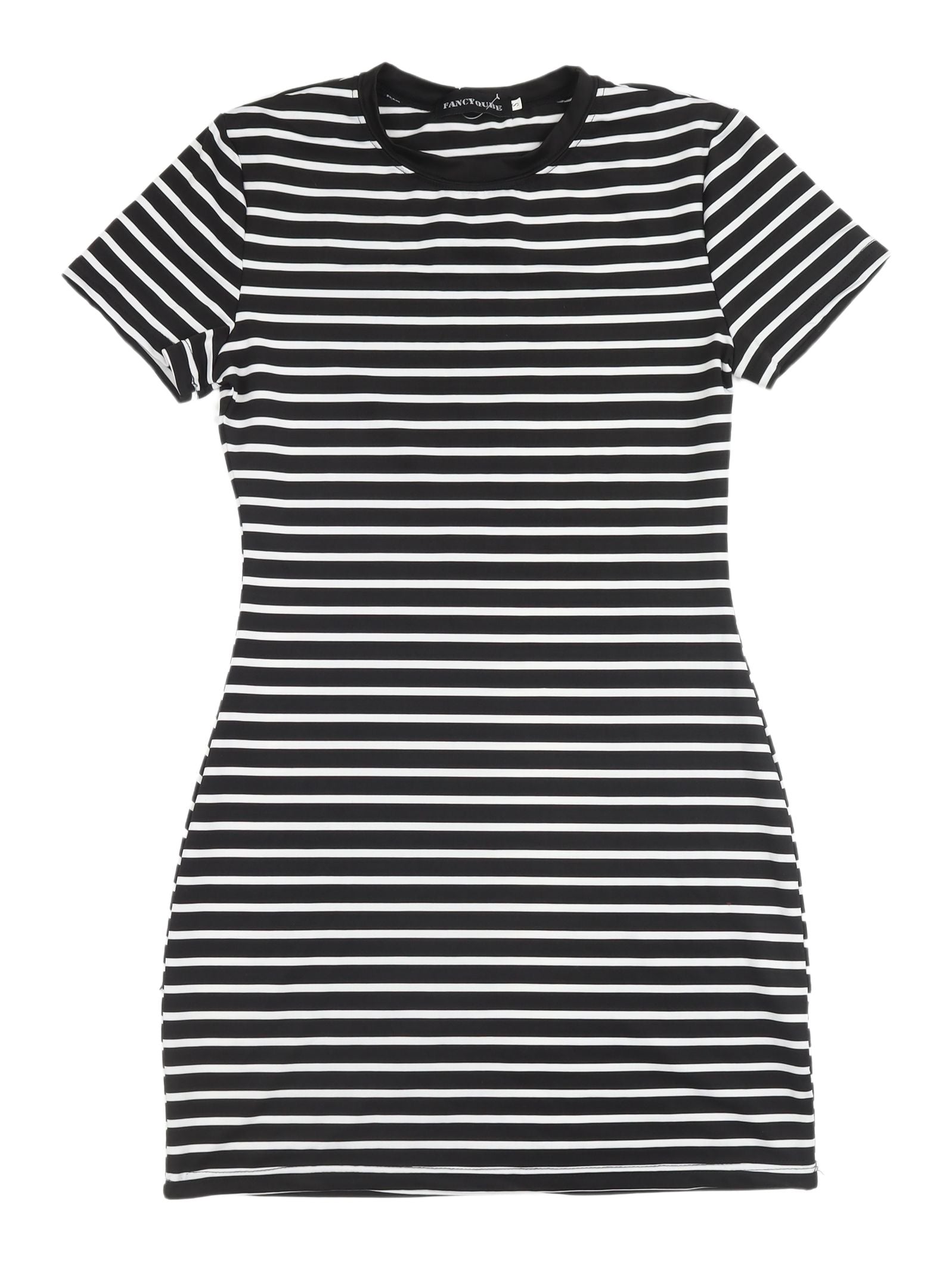 FANCYQUBE Women's Black Striped Bodycon Dress S