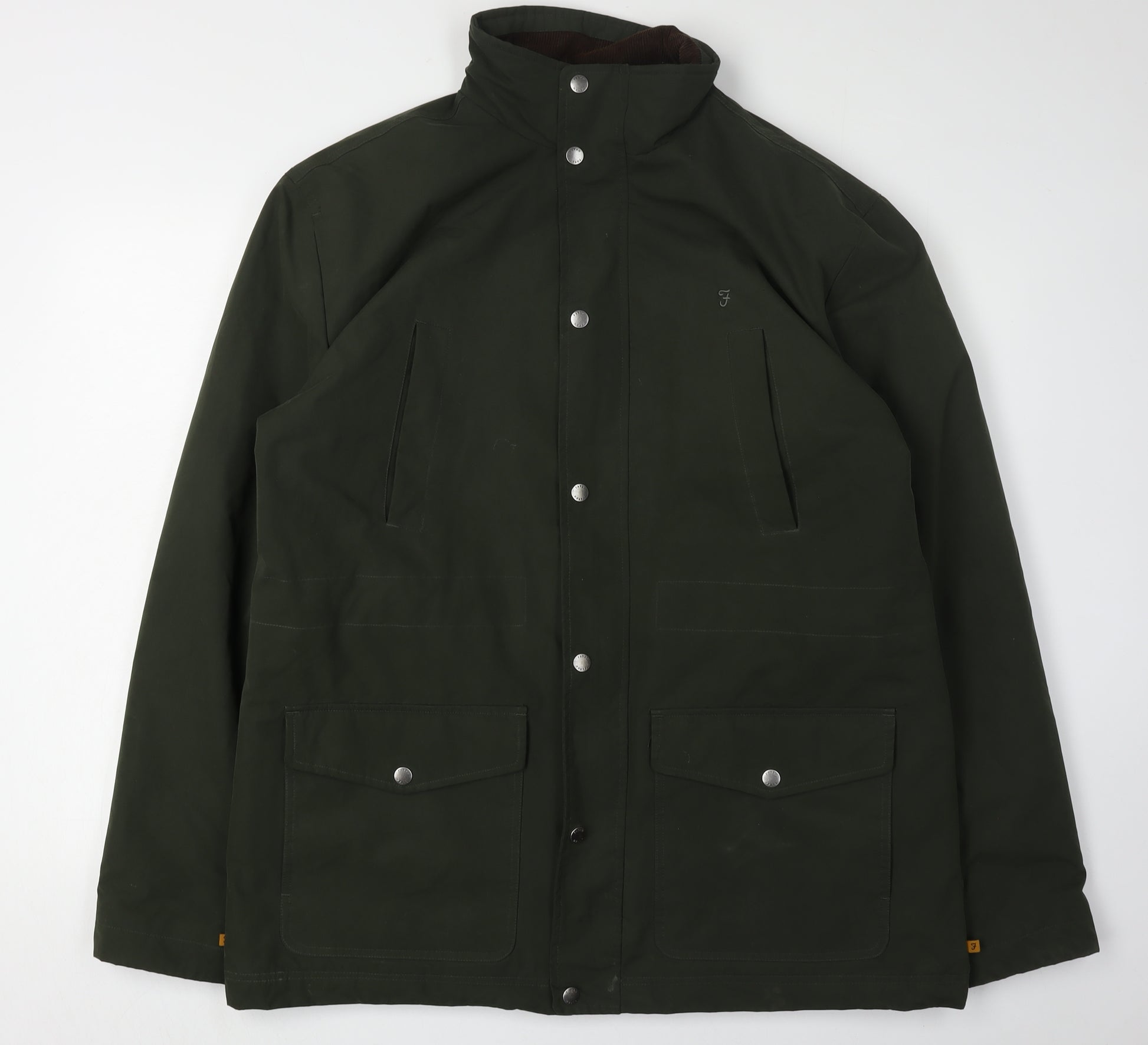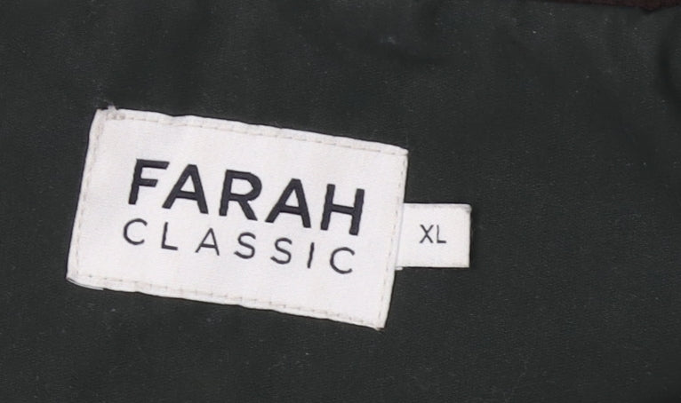 This Farah Classic Jacket offers a refined and practical addition to your outerwear collection, perfectly crafted for a modern man. Constructed with a high-quality outer shell made of 100% polyester, this jacket promises durability and a sleek appearance. Designed in an understated yet stylish green, it is suitable for various casual occasions. The jacket features a stand-up collar, providing a touch of elegance and extra protection against the elements. Lined and padded with polyester, it offers warmth and comfort, making it ideal for both autumn and winter seasons.With a regular fit and XL size, this mid-length jacket promises a comfortable wear for men, further ensuring practical usability with its secure button and zip closure. The jacket's essential design is enhanced by the presence of functional pockets and an accentuating logo detail, adding a subtle touch of class. Enjoy effortless maintenance with its machine washable feature, guaranteeing convenience and ease of care.Ideal for everyday casual outings, this Farah Classic Men's Jacket is an investment in timeless style and reliable warmth. Embrace a versatile garment that seamlessly combines functionality and modern aesthetics. Experience both comfort and durability wrapped in an exceptional piece of outerwear.