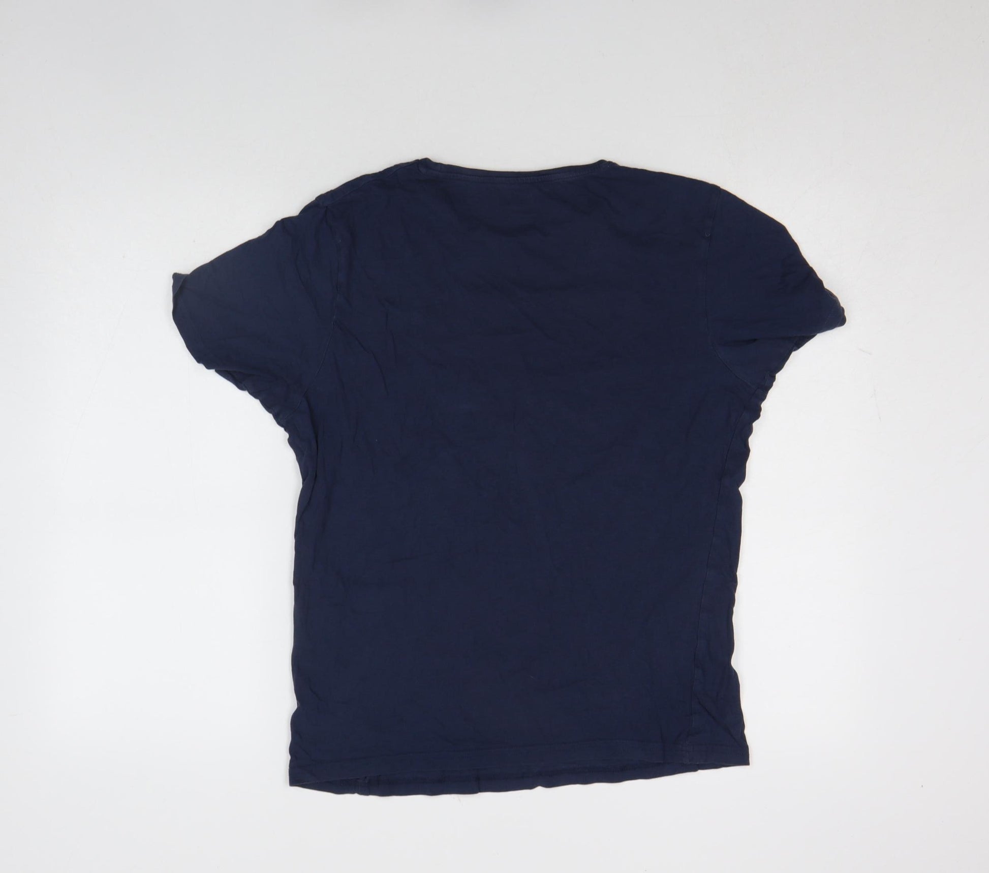 This Farah Men's Blue Crew Neck T-Shirt is a timeless essential for any casual wardrobe, crafted from 100% cotton for a soft, breathable feel and lasting comfort. Designed in a solid navy blue tone, this short-sleeve T-shirt features the signature Farah embroidered logo on the chest, adding a touch of understated style. The regular fit ensures easy movement and a relaxed silhouette, ideal for everyday wear whether at home, out with friends, or during light activities. Made from high-quality jersey cotton, it delivers all-day comfort while maintaining an effortlessly clean aesthetic. The machine washable fabric makes it simple to care for, retaining its smooth shape and colour with proper washing. Suitable for wearing across seasons – from spring to autumn – this versatile tee pairs perfectly with jeans, chinos, or casual shorts. This pre-owned T-shirt remains in very good condition, showing only light signs of wear and minor creasing, but no damage or marks. A reliable addition to any man’s clothing collection, it blends Farah’s reputation for modern simplicity and lasting comfort with practicality for everyday dressing. Whether you’re refreshing your loungewear rotation or looking for an easy base layer, this Farah cotton tee delivers effortless style with premium comfort. A dependable staple for men who favour classic British design, breathable fabrics, and versatile wear across seasons.