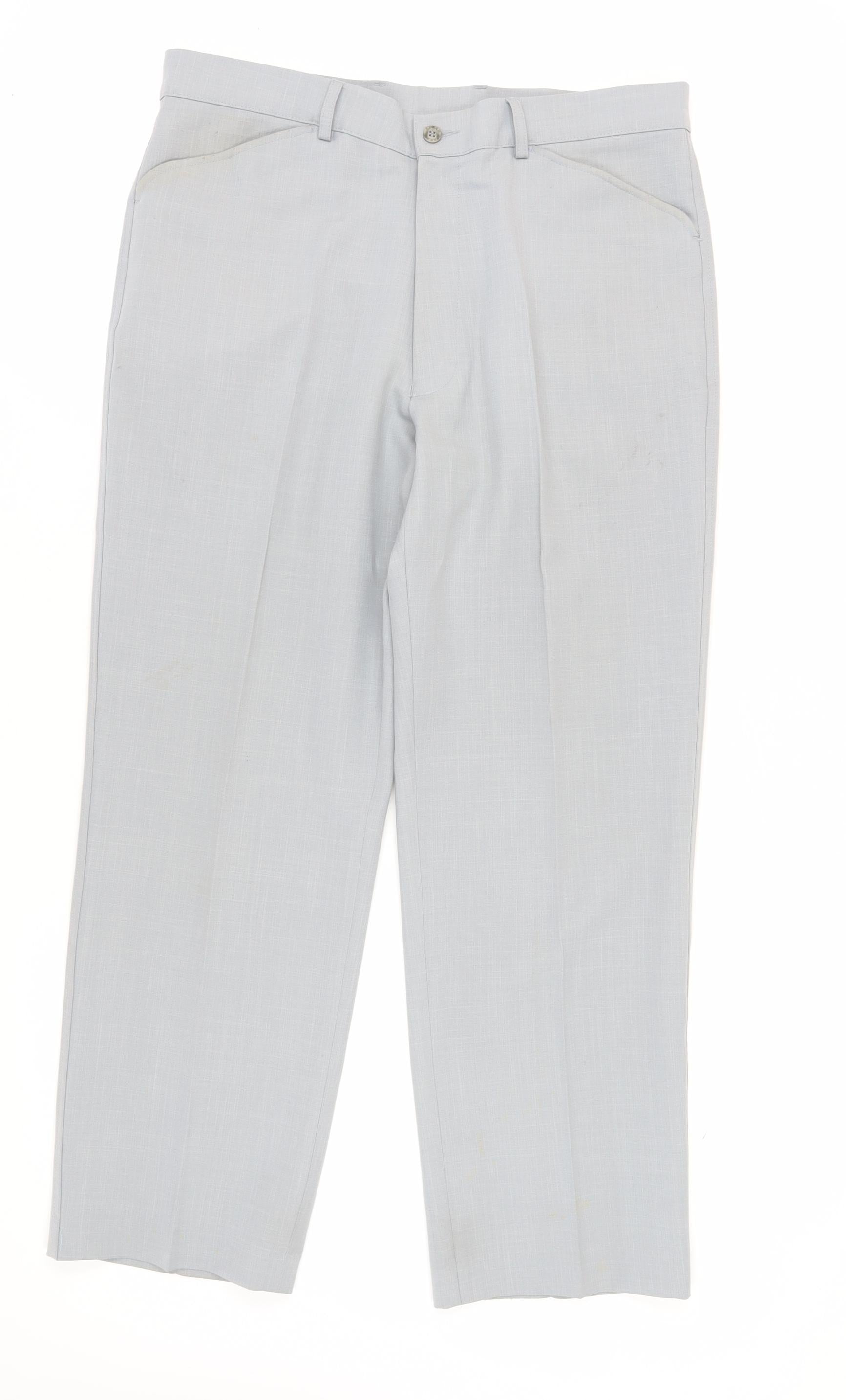 Elevate your wardrobe with these refined men's dress trousers from Farah, a recognised name in quality menswear. Tailored in a sophisticated blue shade, these trousers are ideal for formal occasions, exuding elegance and style. Crafted with care from 100% polyester, they offer durability and a comfortable fit. The trousers feature a classic straight leg design with a mid-rise waist that promises a flattering silhouette. Practical button closure ensures ease of wear while maintaining a sleek look. Though gently used, with minor stains visible, these trousers maintain their stylish appeal, perfect for anyone keen on adding a touch of class to their ensemble without breaking the bank. Ideal for business meetings or formal gatherings, these trousers are a versatile addition to any gentleman's wardrobe. Designed to match with a variety of shirts and jackets, they're easily machine washable, making them a convenient choice for the modern man. Don't miss out on this opportunity to own a piece of Farah's superb craftsmanship at an attractive price.