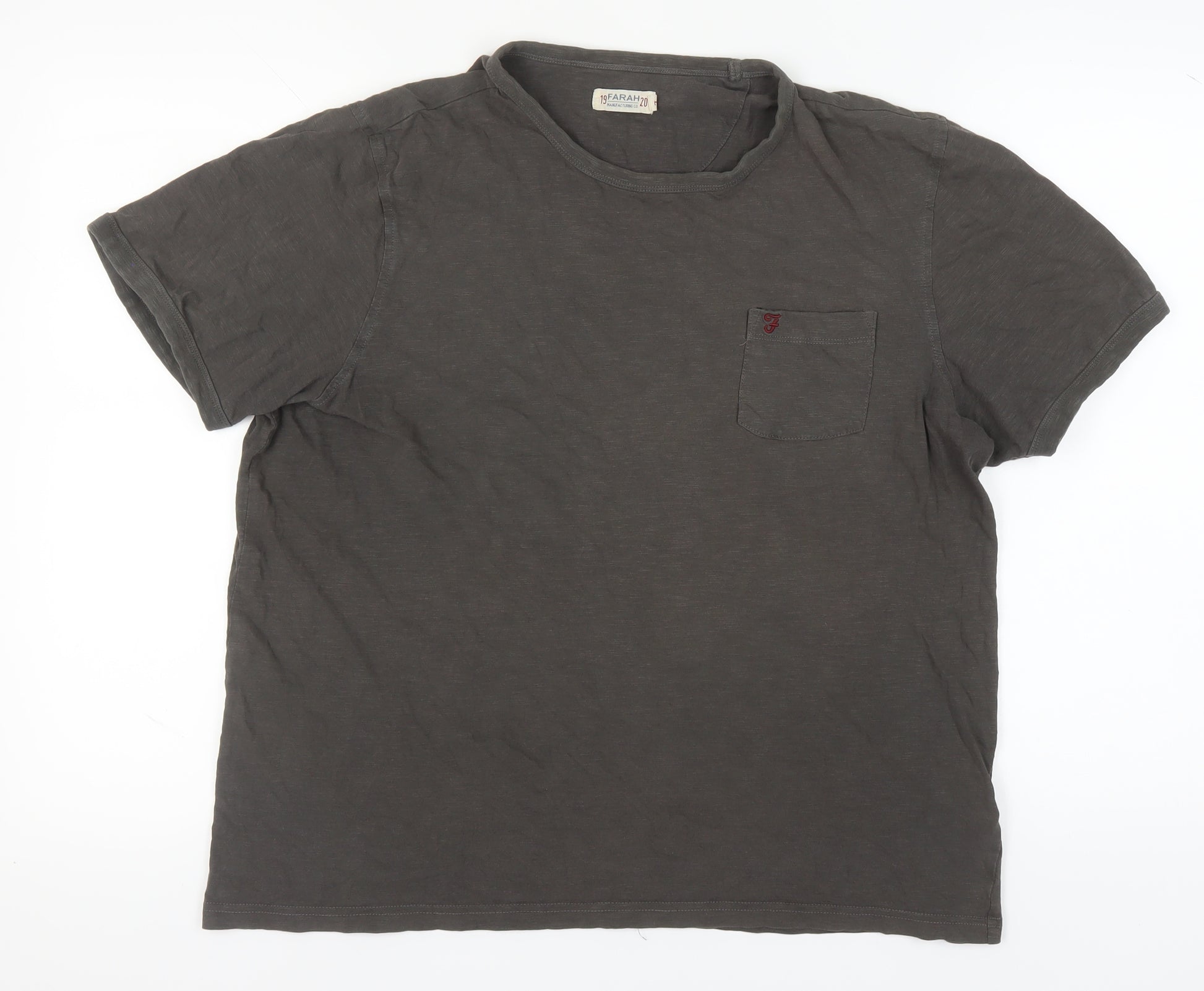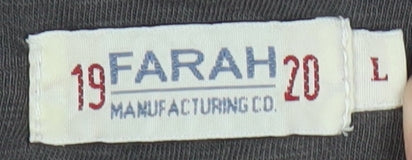 Step out in style with this versatile men's T-shirt by Farah, a classic addition to any wardrobe. Crafted from 100% cotton, it offers both comfort and durability, making it perfect for everyday wear. The rich grey hue and solid pattern provide a sleek and understated look, which can be easily paired with any outfit. Featuring a crew neckline and short sleeves, this T-shirt is designed for a relaxed fit, ensuring maximum comfort throughout the day. This piece belongs to the regular size type category, making it an ideal choice for an effortlessly cool, laid-back style.Despite its pre-owned status, this T-shirt is in excellent condition, showcasing minimal signs of wear, giving you the look and feel of a new shirt without the new price tag. Machine washable for easy care and maintenance, this Farah T-shirt is perfect for all seasons, allowing you to transition seamlessly from summer to winter.Whether worn on its own for a minimalist look or layered with your favourite jacket, this T-shirt is sure to become a staple in your casual wardrobe. Elevate your everyday style with this must-have Farah T-shirt and experience the blend of comfort and fashion that Farah is renowned for.