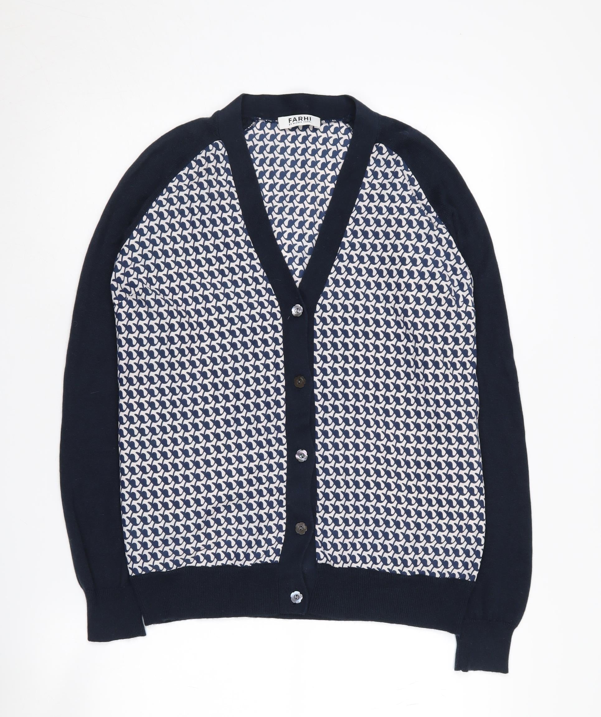 Farhi Women's Blue Cardigan M V-Neck Geometric
