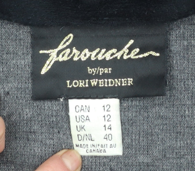 Step out in timeless elegance with this sophisticated Women’s Long Overcoat by Farouche, designed by Lori Weidner. Crafted in a sleek dark grey tone, this piece brings an effortlessly refined silhouette perfect for both business and casual wear. Made from a quality polyester and cotton blend, the fabric delivers structure, softness, and durability all in one, ensuring lasting comfort through cooler seasons. The coat features a beautifully tailored cut that defines the figure, alongside a double-breasted button fastening that adds a touch of vintage charm. A soft velvet-look collar gives a luxurious finish and elevates the piece’s overall appearance. Lined in smooth polyester, this coat ensures a comfortable fit while providing reliable warmth without unnecessary bulk — ideal for autumn and winter wear. The longline design ensures great coverage and layers beautifully over workwear or casual outfits. Subtle rib-knit texturing and a classic button accent at the front complete this chic outerwear essential. Perfect for those who value refined fashion, this coat transitions seamlessly from day to evening looks, giving you that poised yet approachable appearance. Pair it with tailored trousers, boots, or a statement bag to finish the outfit with confidence. Made in Canada, this Farouche overcoat is a wonderful find for anyone seeking quality craftsmanship and timeless design. In excellent pre-loved condition, showing only minimal signs of gentle wear from previous ownership, this classic piece remains ready to continue elevating your wardrobe. A beautiful fusion of traditional styling and wearability, this is a coat that stands the test of time, keeping you warm, stylish, and effortlessly elegant wherever you go.