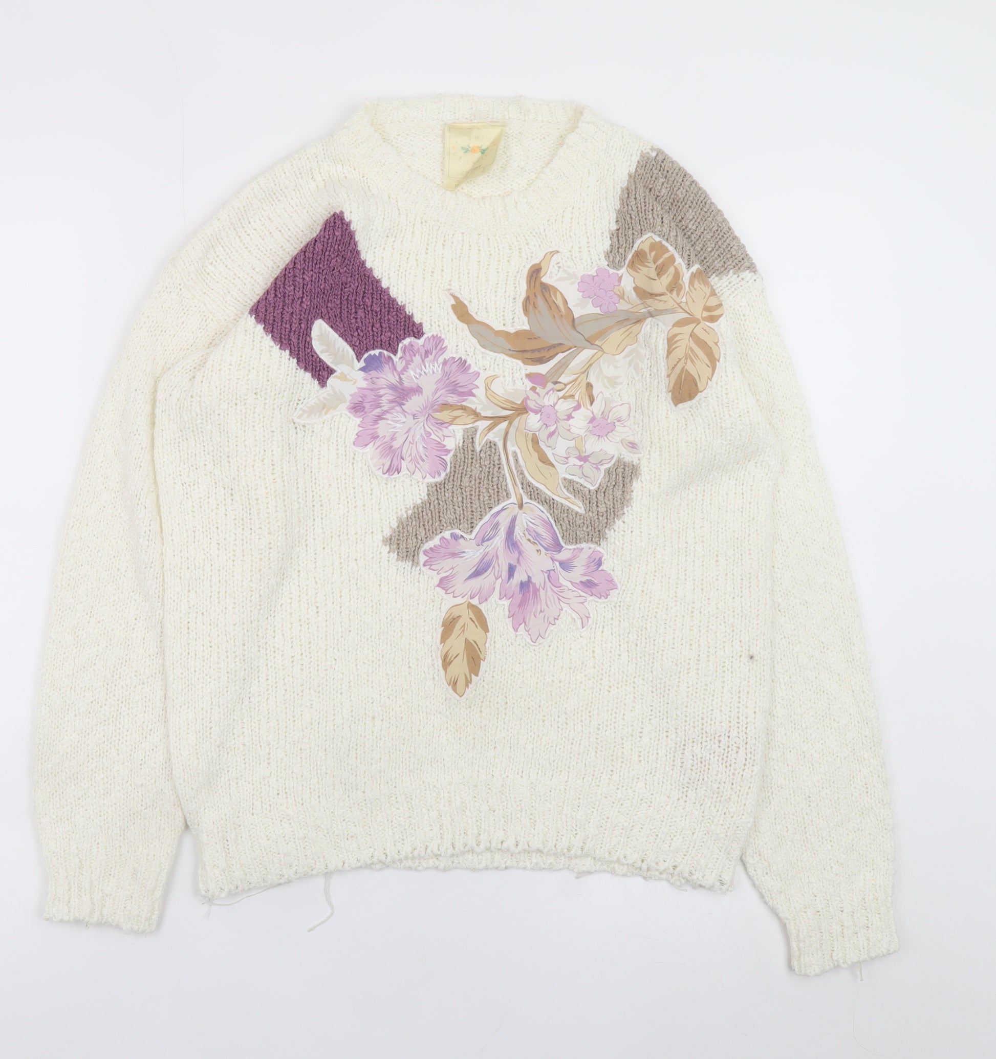 Women's Ivory Floral Knit Pullover Jumper M
