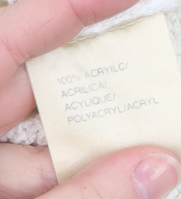 Step into vintage-inspired elegance with this beautiful Women’s Fashion Classics ivory floral knit pullover jumper. This charming piece is crafted from soft 100% acrylic, offering a warm yet lightweight feel that's ideal for layering during the cooler months. Featuring a lovely chunky-knit texture, it effortlessly combines coziness with style. The design is highlighted by striking floral embroidery in shades of lilac, purple, and beige across the front, giving it a feminine and timeless appeal. The crew neckline and ribbed hem and cuffs offer a classic silhouette that flatters without compromising comfort. Perfect for women who love classic details with a touch of vintage flair, this jumper pairs wonderfully with jeans or skirts for casual outings, lunches, or relaxed evenings. The regular fit ensures easy wear, while long sleeves make it ideal for autumn and winter. This jumper embodies effortless style for the modern woman who appreciates nostalgic charm and practicality. Whether you're adding a statement piece to your knitwear collection or searching for the perfect gift for a loved one, this garment’s exceptional design and quality craftsmanship stand out. Though pre-owned, it remains in excellent condition with only minimal signs of gentle wear. Embrace a cozy yet chic look for the season with the Fashion Classics floral knit jumper, a wardrobe favourite that promises warmth and sophisticated beauty in every wear.