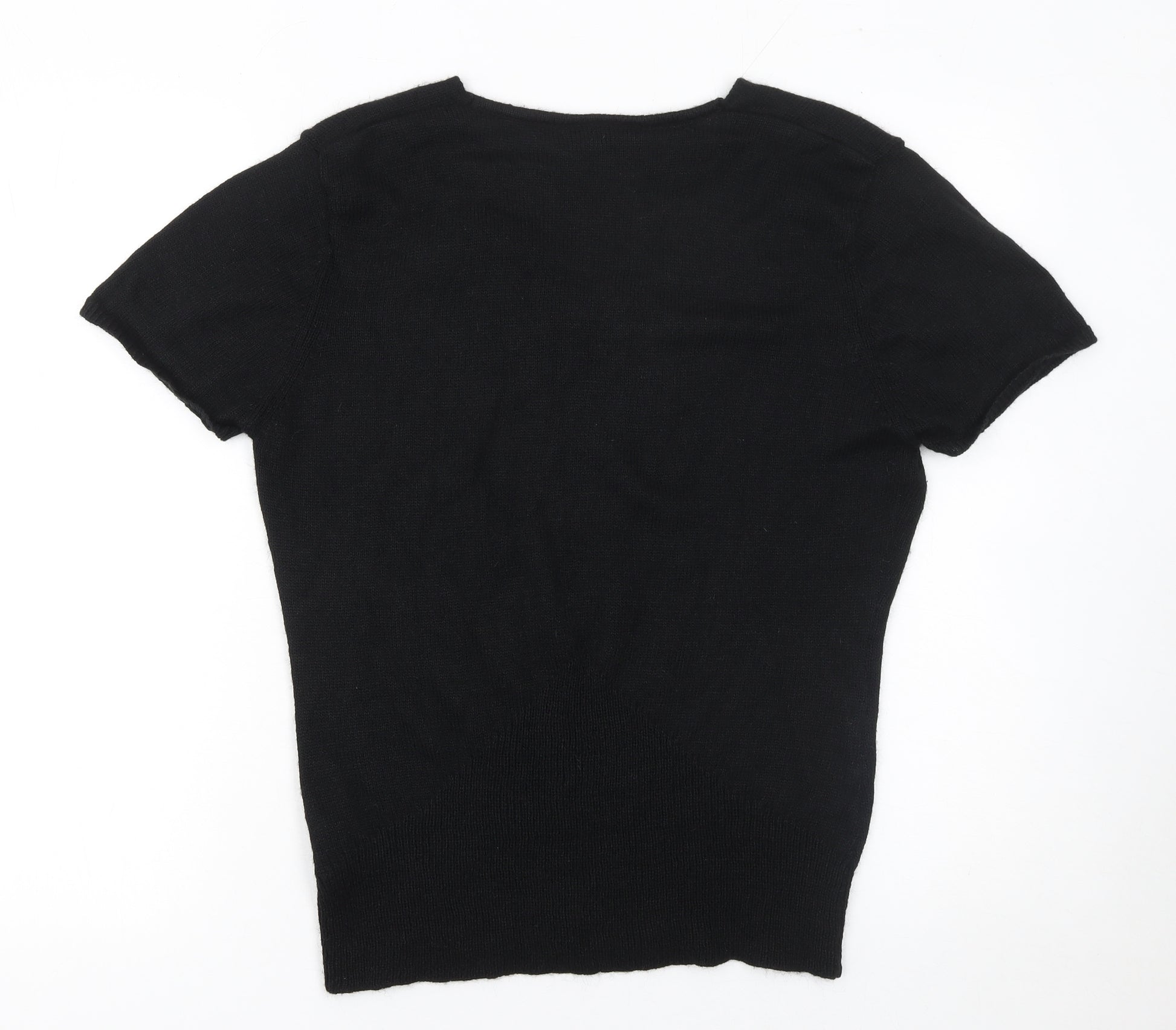 Women's Black V-Neck Short Sleeve Pullover Jumper Size 16