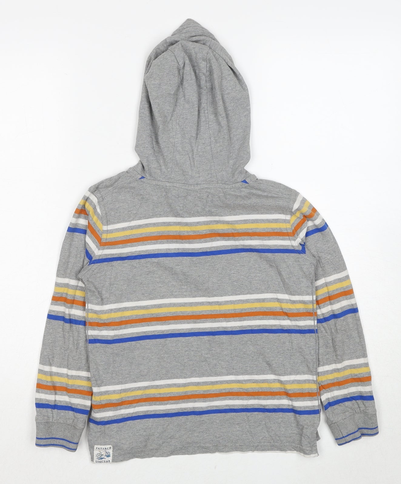 Boys Grey Striped Cotton Pullover Hoodie Size 7-8 Years Pullover