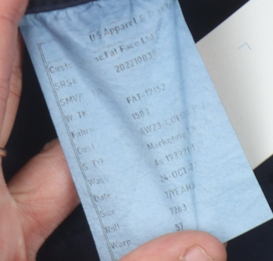 Elevate your child's wardrobe with these stylish FatFace Girls Wide-Leg Jeans in a rich blue colour. Perfectly designed for casual occasions, these jeans feature a comfortable relaxed fit, ensuring ease of movement and a trendy silhouette. The mid-rise waist and button closure provide a secure and snug fit, ideal for daily wear. Crafted with high-quality cotton denim, these jeans are durable and machine washable, making them a practical choice for active young ones. The dark fabric wash adds a touch of sophistication, while the frayed hem accentuates a playful, modern look. These jeans are new with tags, guaranteeing excellent condition and quality. Suitable for autumn and winter, these jeans can be paired with a variety of tops for a versatile style statement.
