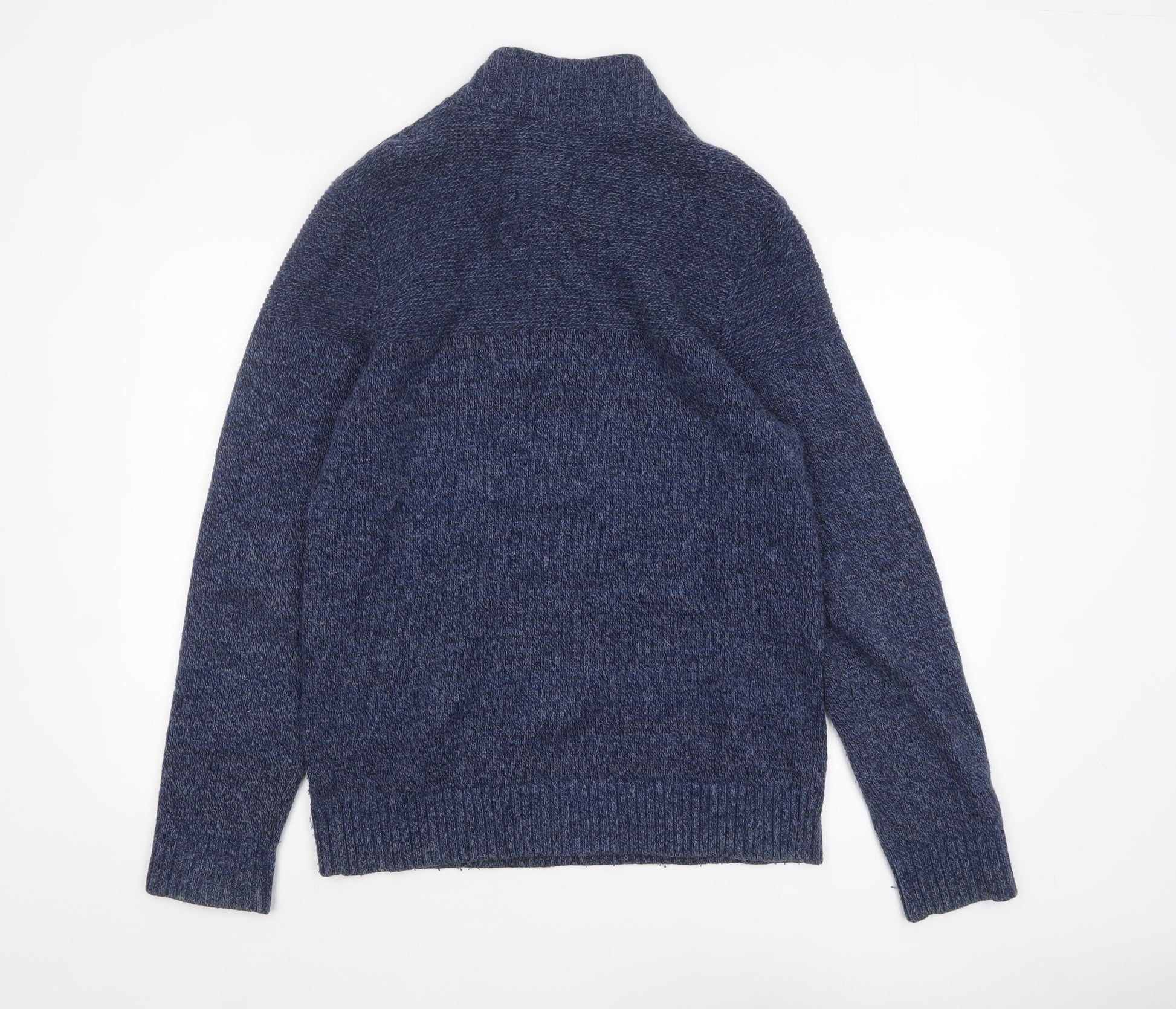 Men’s Blue Wool Blend High Neck Chunky Knit Jumper Size M