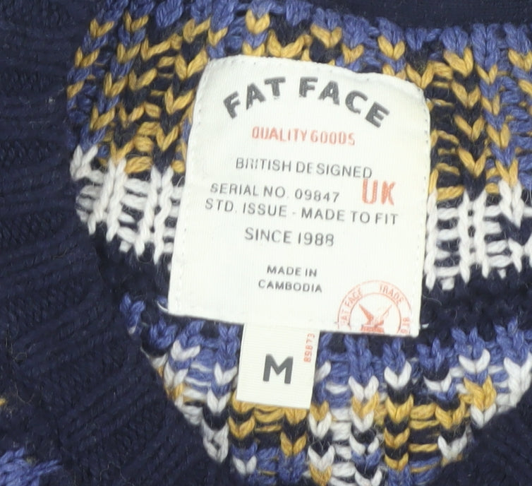 Discover ultimate comfort and style with the Fat Face Men's Blue Fair Isle Jumper. Perfect for the winter season, this M-sized pullover is crafted from a cosy blend of 59% cotton, 29% polyester, and 12% wool, ensuring warmth and durability. The intricate Fair Isle pattern across the neckline adds a touch of classic charm, while the blue hue complements any casual wardrobe. Ideal for various casual occasions, this regular-fit jumper features a crew neck and long sleeves for added comfort. Pair it effortlessly with jeans or chinos for a smart, laid-back look.