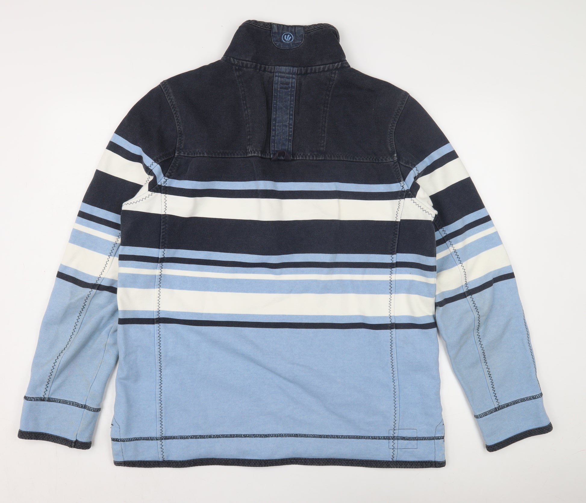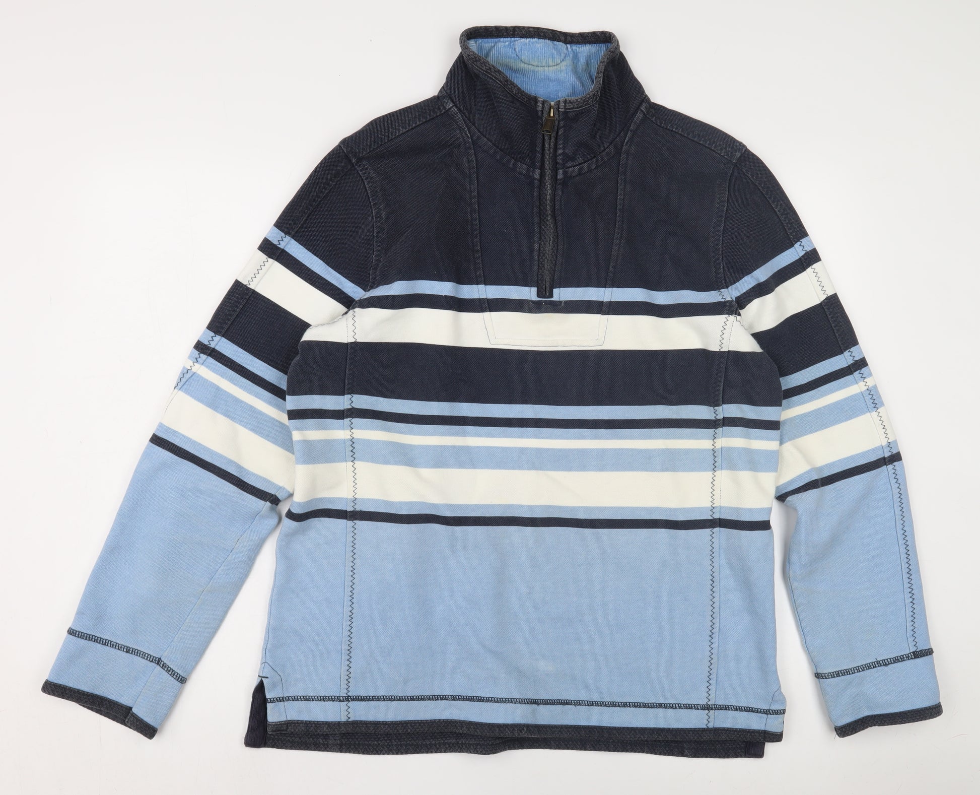 Enhance your wardrobe with this stylish Fat Face men's sweatshirt in a soothing blue colour. Boasting a versatile 1/4 zip style and a regular fit, this sweatshirt seamlessly combines comfort with a touch of sophistication. The high neck design offers extra warmth during the cooler months, making it an excellent choice for autumn, winter, and spring. Designed with a striped pattern, this lightweight sweatshirt provides a classic yet modern appeal, suitable for various occasions. Made from 100% cotton twill fabric, it assures both durability and breathability. The long sleeves and high-quality zip closure enhance its functionality, making it ideal for layering. Although in very good condition, minor marks are present, adding a hint of character to its overall look. Pair it with your favourite jeans or chinos to create a casual yet fashionable ensemble perfect for any outdoor or indoor activity. Whether you're heading for a casual outing or enjoying a relaxed day at home, this practical and chic sweatshirt from Fat Face is designed to keep you comfortable and stylish throughout.