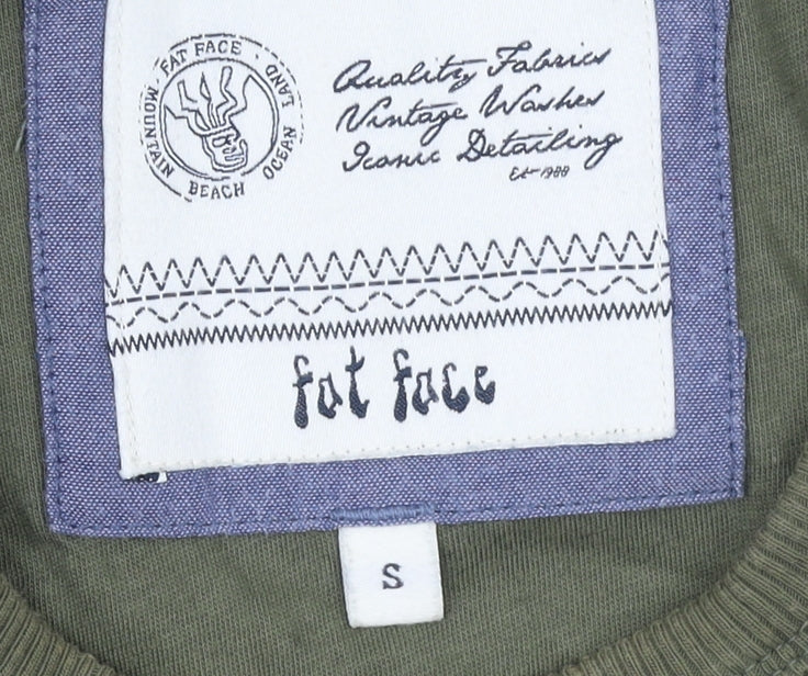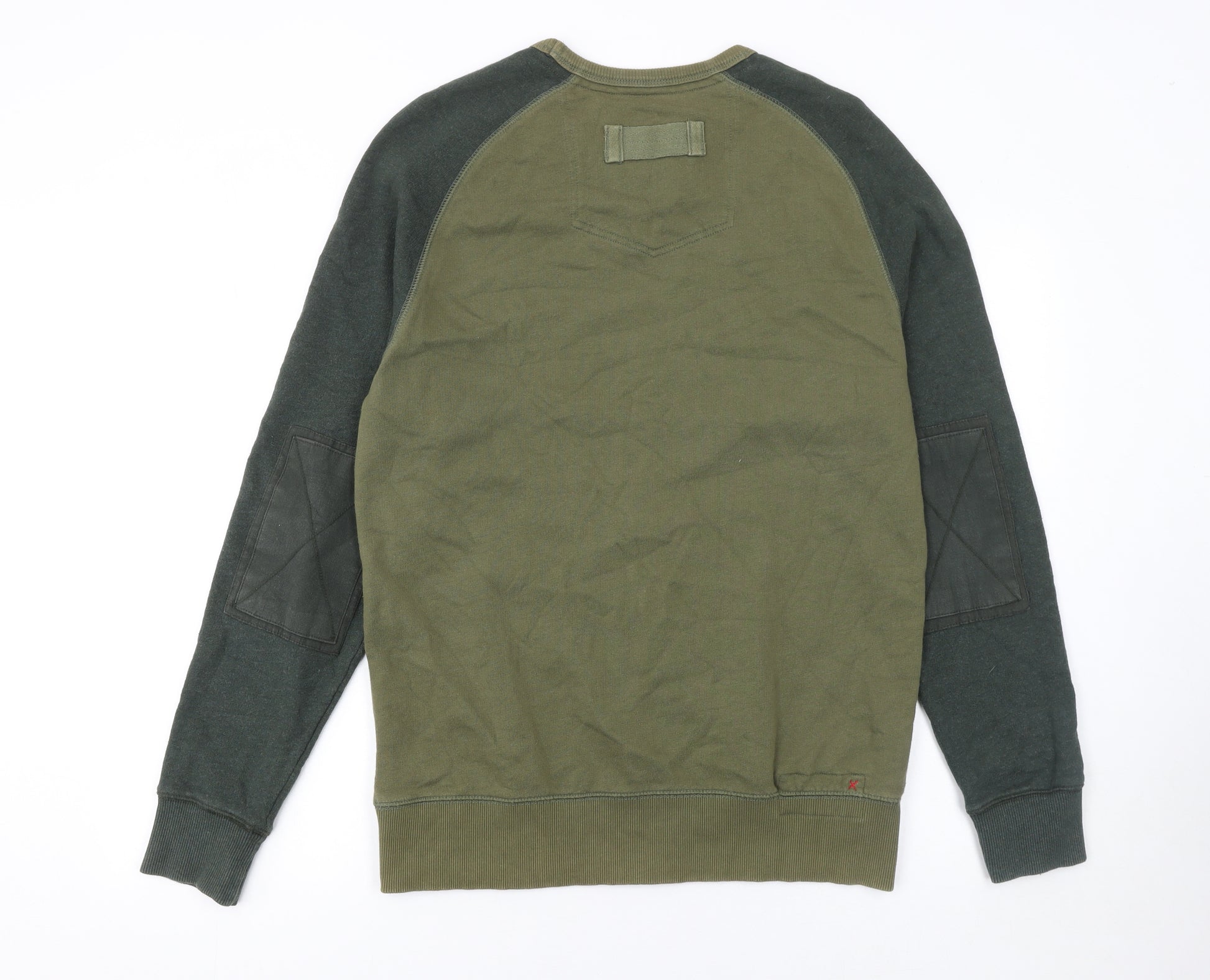 Elevate your casual wardrobe with this classic Fat Face men's sweatshirt in a versatile green shade. Designed in a regular fit and crafted from 100% cotton, this soft jersey pullover is perfect for layering across multiple seasons such as autumn, spring and winter. The durable yet comfortable fabric ensures long-lasting wear, while the ribbed cuffs, hem, and collar help keep the warmth in on cooler days. This piece features Fat Face’s signature outdoor styling with subtle logo embroidery on the chest and practical stitched elbow patches that add both character and durability, making it a great choice for everyday use or outdoor adventures. The crew neckline and contrasting sleeve detail give it a touch of casual style that pairs effortlessly with jeans or chinos. Suitable for walking, hiking, or relaxing at home, this heavyweight sweatshirt provides both function and comfort. The simple yet refined design aligns well with Fat Face’s “quality fabrics and vintage washes” ethos. Its pure cotton composition allows breathability and easy machine washing, ensuring hassle-free care. Although previously owned, the sweatshirt remains in excellent overall condition with light wear and no noticeable damage. Whether you need an extra layer for those weekend strolls or something cosy for downtime, this green Fat Face sweatshirt is a reliable and stylish option, ideal for men who value laid-back British-inspired outdoor fashion. Grab this comfortable, everyday essential and add a touch of casual class to your wardrobe today.