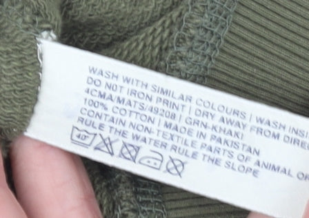 Men's Green Pullover Sweatshirt S Regular Fit Cotton Outdoor Style
