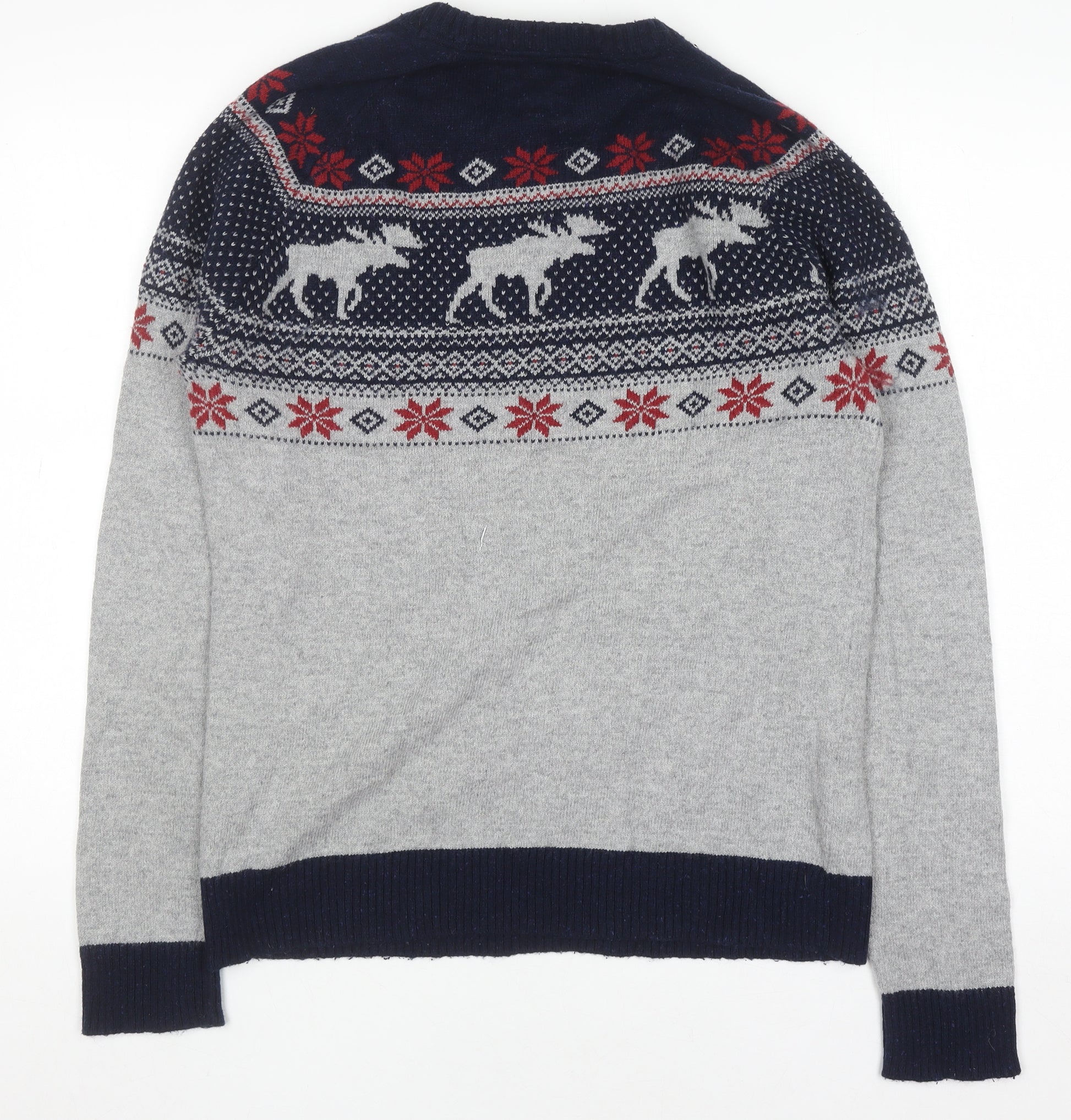 Men's Grey Fair Isle Wool Blend Jumper Size M