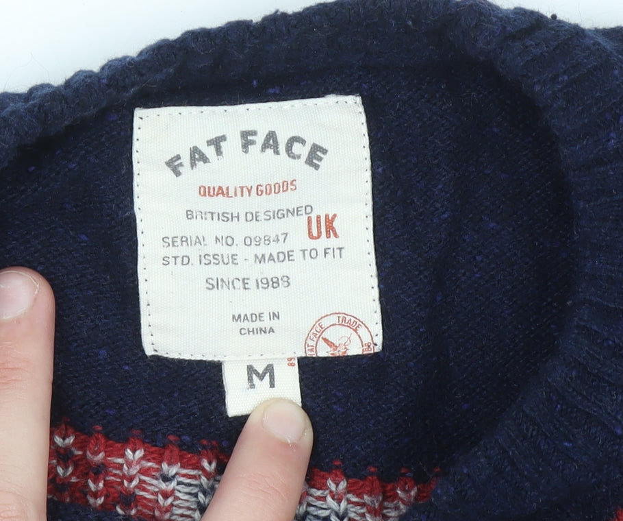Stay warm and stylish this winter with this Fat Face men's Fair Isle jumper in size M. Expertly crafted with a soft blend of wool, cotton, and nylon, this pullover offers a comfortable fit and cosy feel, perfect for the chillier autumn and winter months. Designed in a classic grey base with navy and red accents, the jumper features an eye-catching Fair Isle pattern with festive moose and snowflake motifs, bringing a cheerful seasonal touch to your wardrobe. The crew neck and long sleeves create a timeless silhouette, while the ribbed hem and cuffs ensure a secure, flattering fit. Made from breathable, lightweight knit fabric, it’s ideal for layering over shirts or under jackets on cold days. Whether you’re heading out for a casual day, celebrating the holidays with family or relaxing by the fire, this Fat Face knit will keep you looking and feeling great. Machine washable for easy care, it’s practical as well as stylish. In excellent condition with only minimal signs of gentle previous use, this jumper is a fantastic choice for those seeking dependable comfort, quality, and classic British design. Pair it with jeans and boots for an effortlessly casual winter look or smarten up with chinos for a cosy evening outfit. Grab this must-have Fat Face jumper today – a staple piece designed for warmth, personality, and enduring appeal that’s perfect for festive and everyday wear alike.