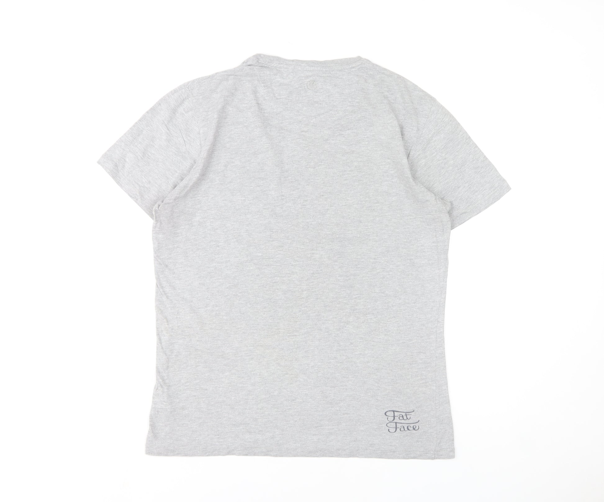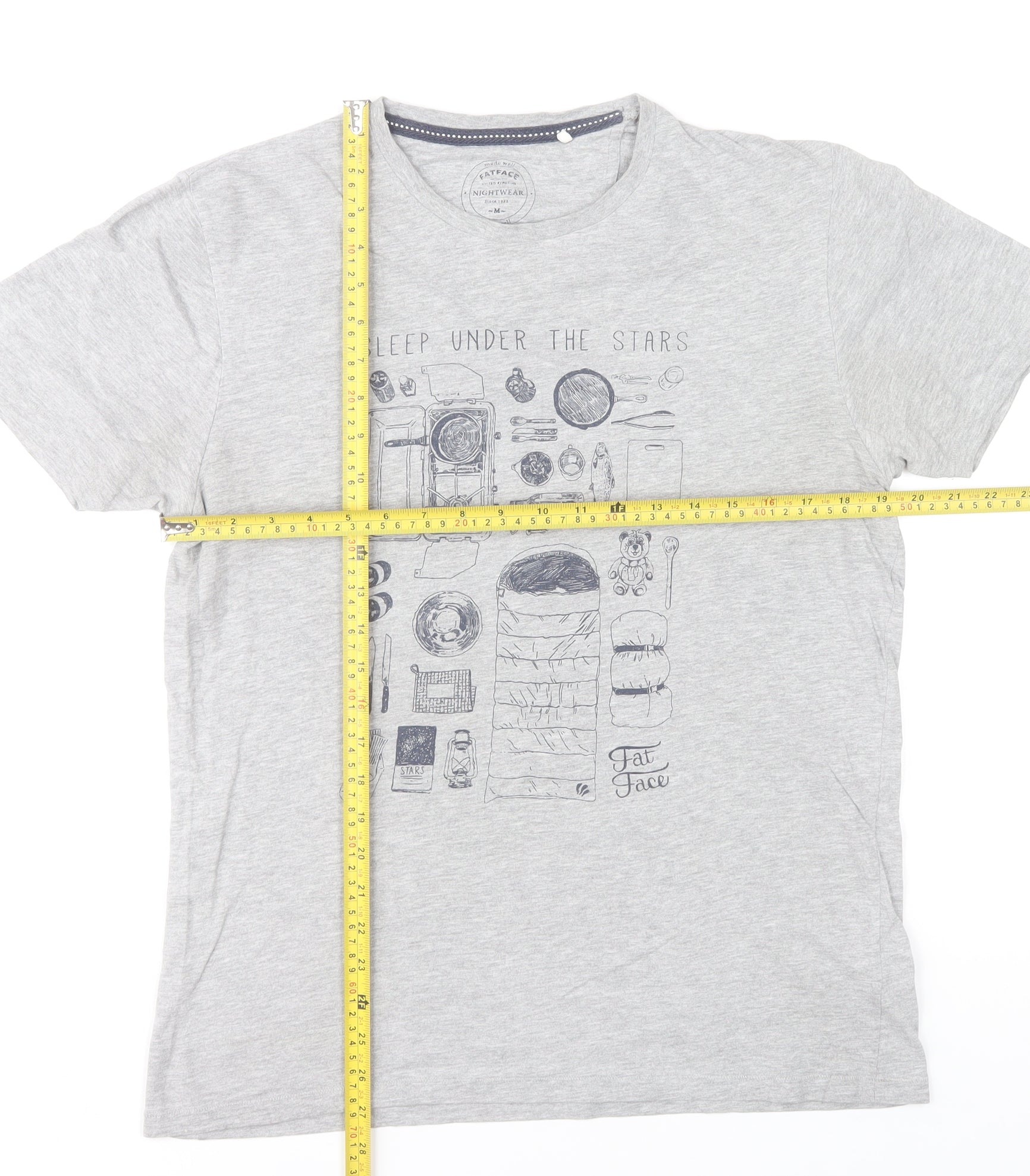 Stay comfortable and stylish as you drift off in this Fat Face men's grey short sleeve pyjama top. Crafted from a soft and breathable jersey material blend of 90% cotton and 10% viscose, it provides a naturally lightweight and smooth finish ideal for restful nights. The fabric feels gentle against the skin and ensures breathability for comfort throughout the night and relaxed evenings at home. Featuring a round crew neckline for a classic fit, this pyjama top carries a distinctive outdoor-inspired graphic print across the chest with the words 'Sleep Under the Stars'. The design evokes adventure and relaxation, perfect for anyone who values comfort with personality. The signature Fat Face logo detail at the lower hem adds a subtle, authentic touch. Designed in a regular fit medium size, this top balances freedom of movement and shape retention, ensuring durability through multiple washes. Its light grey marl tone offers an effortlessly modern, versatile look that pairs easily with any lounge or pyjama bottoms. Ideal for layering during cooler months or wearing solo in spring and summer, the top is machine washable for hassle-free care. Whether used as part of your nightwear set or a lounge shirt for easy evenings, this Fat Face pyjama top delivers a great blend of quality, comfort, and timeless style expected from the brand’s long-standing reputation for well-made essentials. A perfect addition to your relaxation wardrobe or a thoughtful gift for someone who appreciates premium, casual nightwear.
