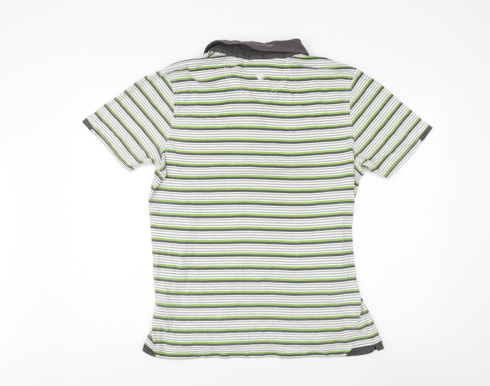 Crew Clothing Co. Men's Multicoloured Striped Cotton Polo Shirt Medium