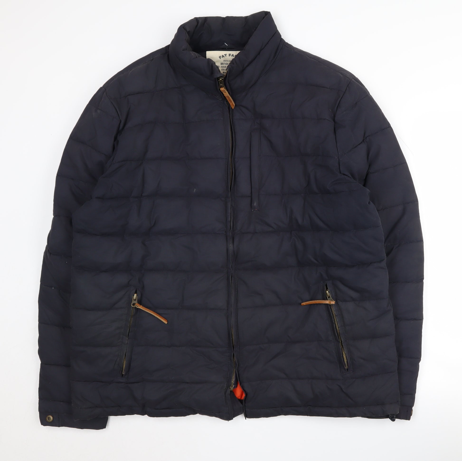 Embrace the cold in style with this Fat Face men's puffer jacket. Crafted for the outdoors, this jacket offers exceptional warmth for the winter months, featuring a robust cotton and nylon shell in a versatile blue tone. The lining is made from soft polyester, providing additional comfort while ensuring you stay snug no matter the weather. Designed with practicality in mind, it boasts stand-up collar and zip closure, complemented by handy zipped pockets for added functionality. Ideal for casual occasions, it seamlessly enhances your winter wardrobe. Though in excellent pre-owned condition, the jacket exhibits slight wear on the material, characteristic of its durability over time. This mid-length jacket is perfect for style-conscious men who value warmth as much as appearance. Its regular fit makes for comfortable wear, effortlessly combining with various casual outfits. Purchased from a reputable retailer, this garment ensures quality and endurance. Be it a walk through the city streets or a trek on a nature trail, this Fat Face jacket is your reliable companion providing both style and substance. A must-have for any winter wardrobe, it offers a seamless blend of functionality and fashion, promising to keep you warm and stylish all season long.