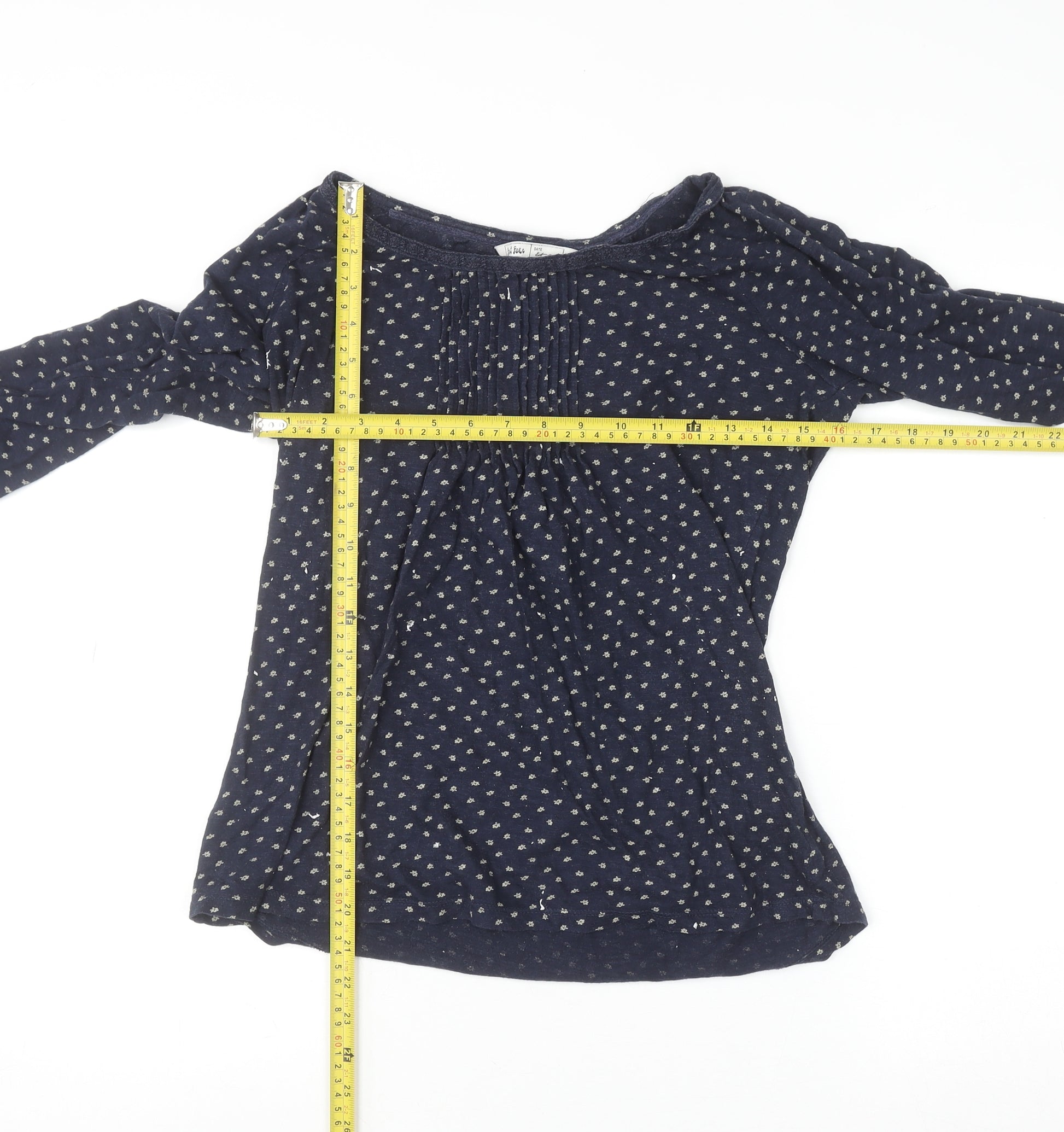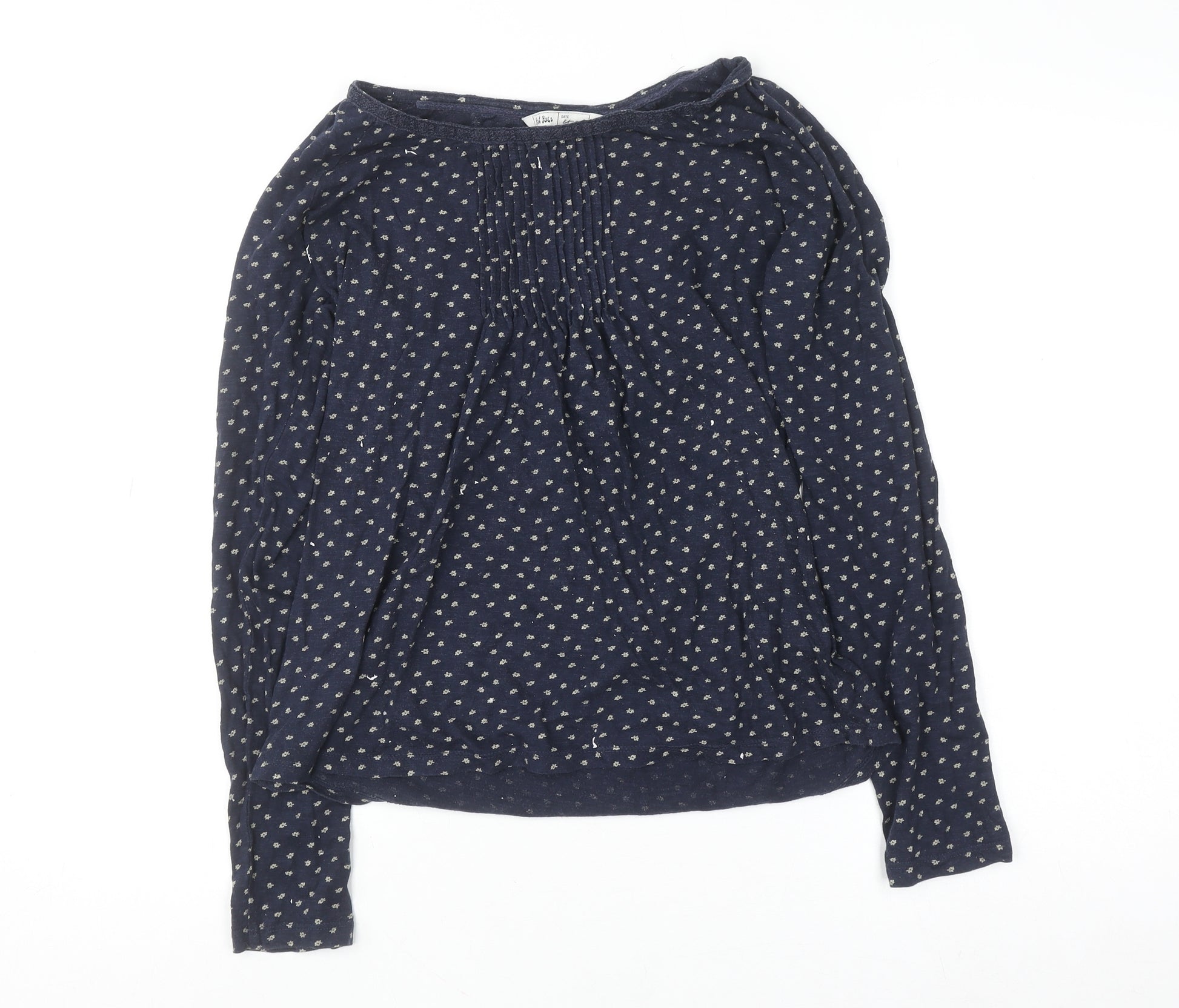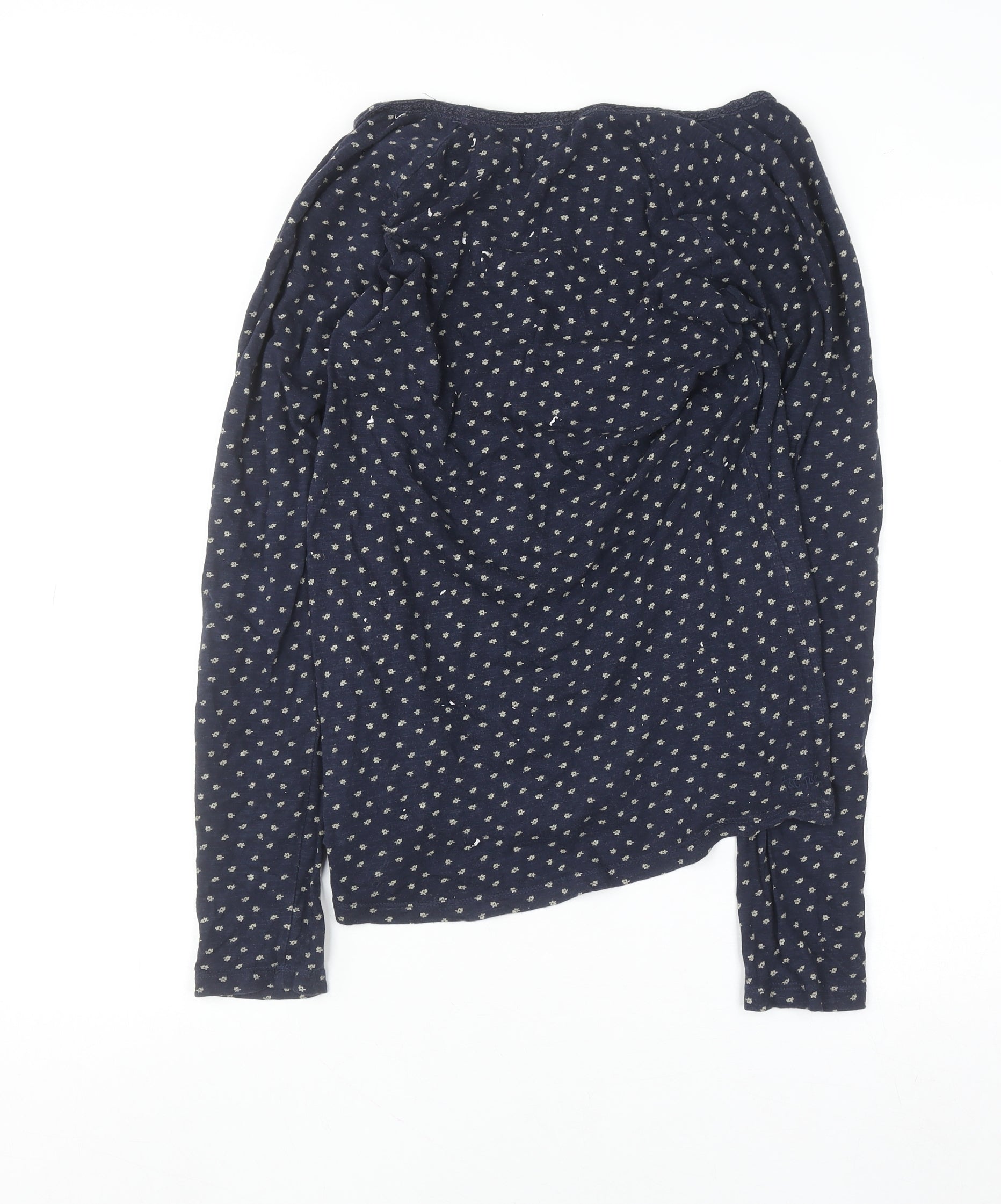 This Fat Face women's long sleeve blouse in size 12 offers effortless everyday style with a touch of laid-back charm. Crafted from 100% cotton, this breathable and lightweight tunic top feels soft against the skin and is designed for comfort and versatility. The navy-blue base, adorned with a delicate repeating floral pattern, brings a timeless and feminine appeal that makes it suitable for a wide range of occasions – from casual weekends to relaxed workdays. The soft jersey fabric and regular fit ensure ease of movement, while the subtle pleating detail along the neckline adds a graceful finish. Featuring a scoop neck and classic long sleeves, this blouse delivers effortless elegance that transitions perfectly across seasons. Easy to pair with jeans, chinos, or skirts, it makes a reliable wardrobe staple for spring and autumn looks. In very good pre-owned condition with only minimal signs of wear, this piece shows quality craftsmanship and classic Fat Face styling. Machine washable for practical care, the top is as easy to look after as it is to wear. Whether you’re out for brunch, running errands, or simply relaxing, this navy floral tunic blouse combines comfort and refined simplicity in one stylish fit. A versatile addition that enhances any everyday wardrobe while providing the durability and softness that 100% cotton fabric is known for. Pair it with statement accessories or keep it simple for an effortlessly polished, casual chic ensemble that you can rely on season after season.