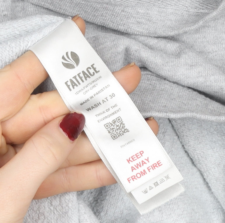 This Fat Face women’s grey sweatshirt delivers casual comfort and easy, relaxed style, perfect for weekend dressing or cosy daily wear. Crafted from a soft cotton blend fabric, the jumper offers breathability with a gently brushed interior for warmth and comfort. The light grey shade is accented with playful 'Weekending' printed text in layered tones of green, mint, lilac and white, adding a fun, laid-back personality to your outfit. Designed in a classic pullover style with long sleeves and ribbed cuffs and hem, this sweatshirt provides a relaxed silhouette suitable for layering or wearing alone. The crew neckline enhances its timeless appeal, making it an easy piece to pair with jeans, leggings, or shorts. Ideal for all seasons, this garment combines effortless cool with premium British-inspired craftsmanship that Fat Face is known for. Whether you are looking for everyday wear or casual home comfort, this versatile sweatshirt is an excellent addition to your wardrobe. In excellent pre-loved condition with only light signs of wear, it maintains great quality and softness. A cosy essential that offers durability, comfort, and style for effortless off-duty looks.