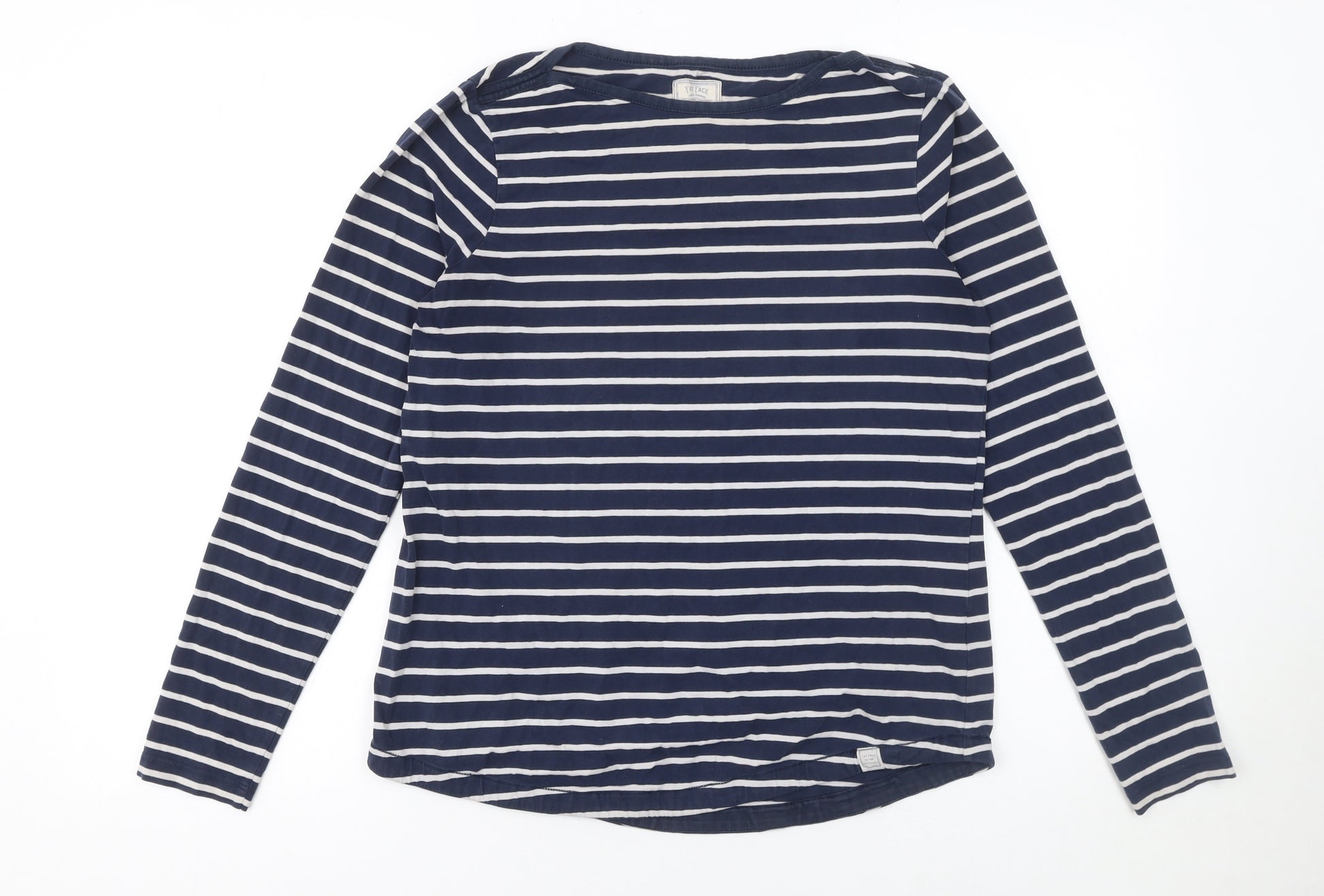 Women Navy Blue Stripe Classic Breton Long Sleeve T-Shirt UK 10