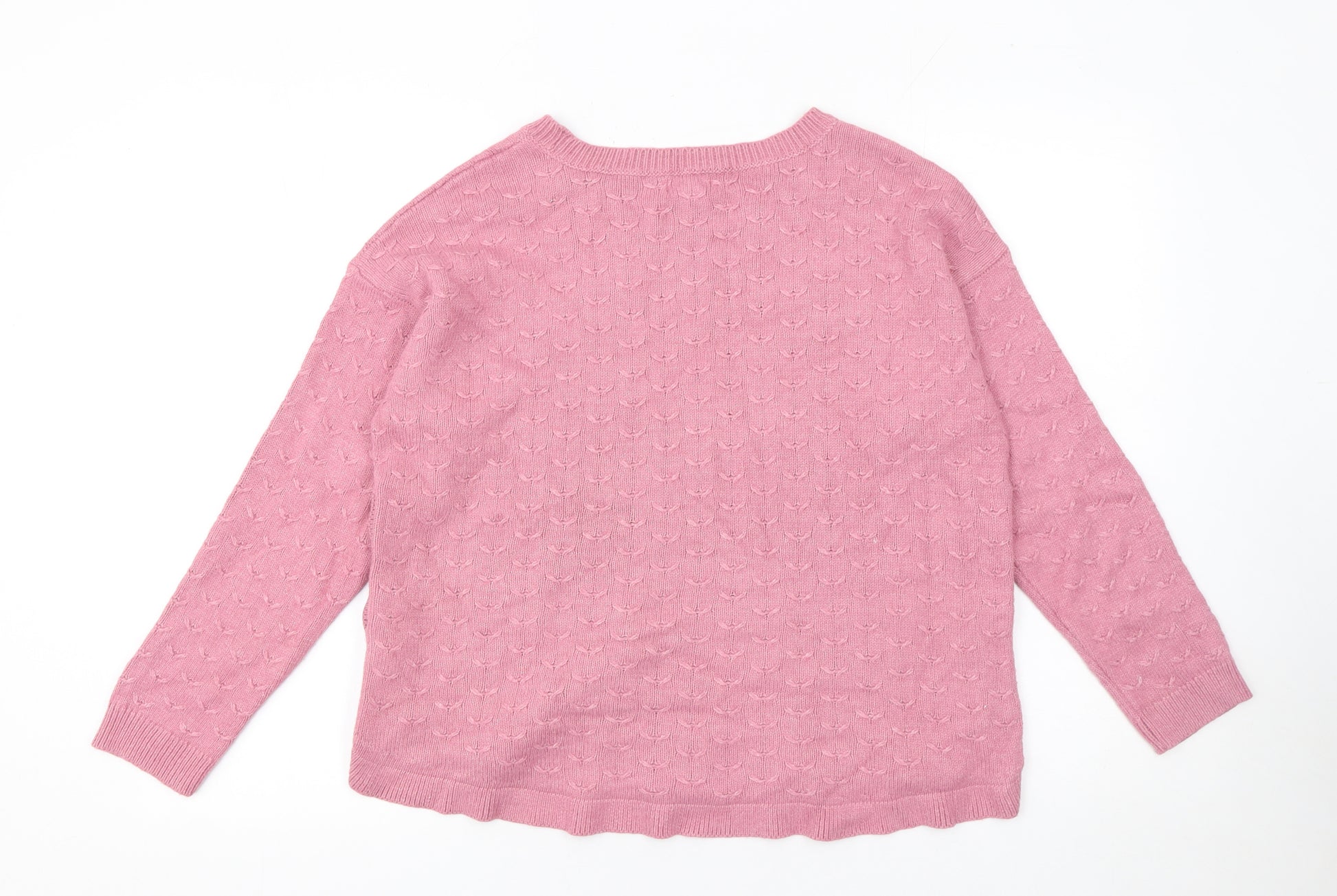 Women Pink Crew Neck Side Button Knit Jumper Size 14