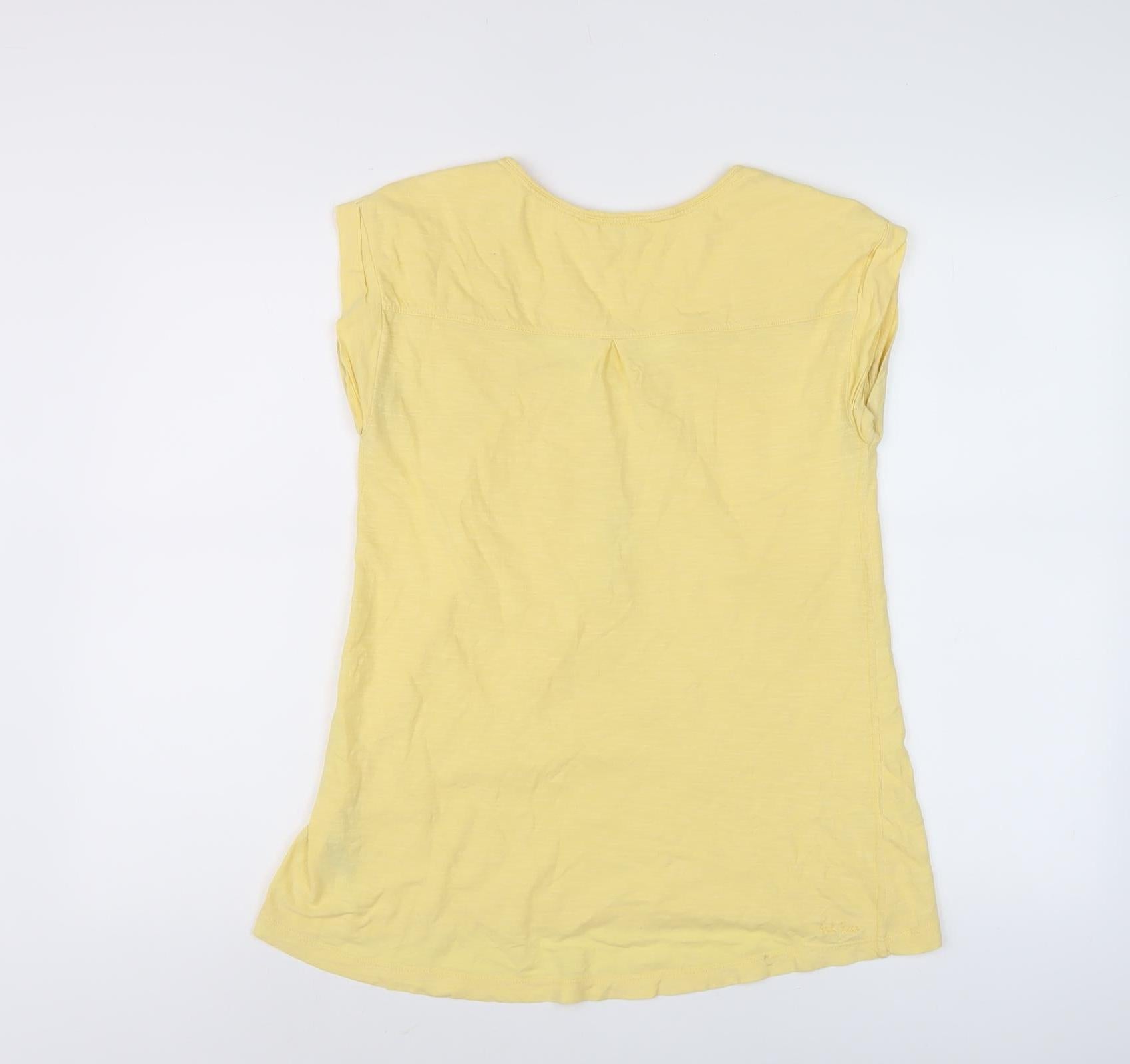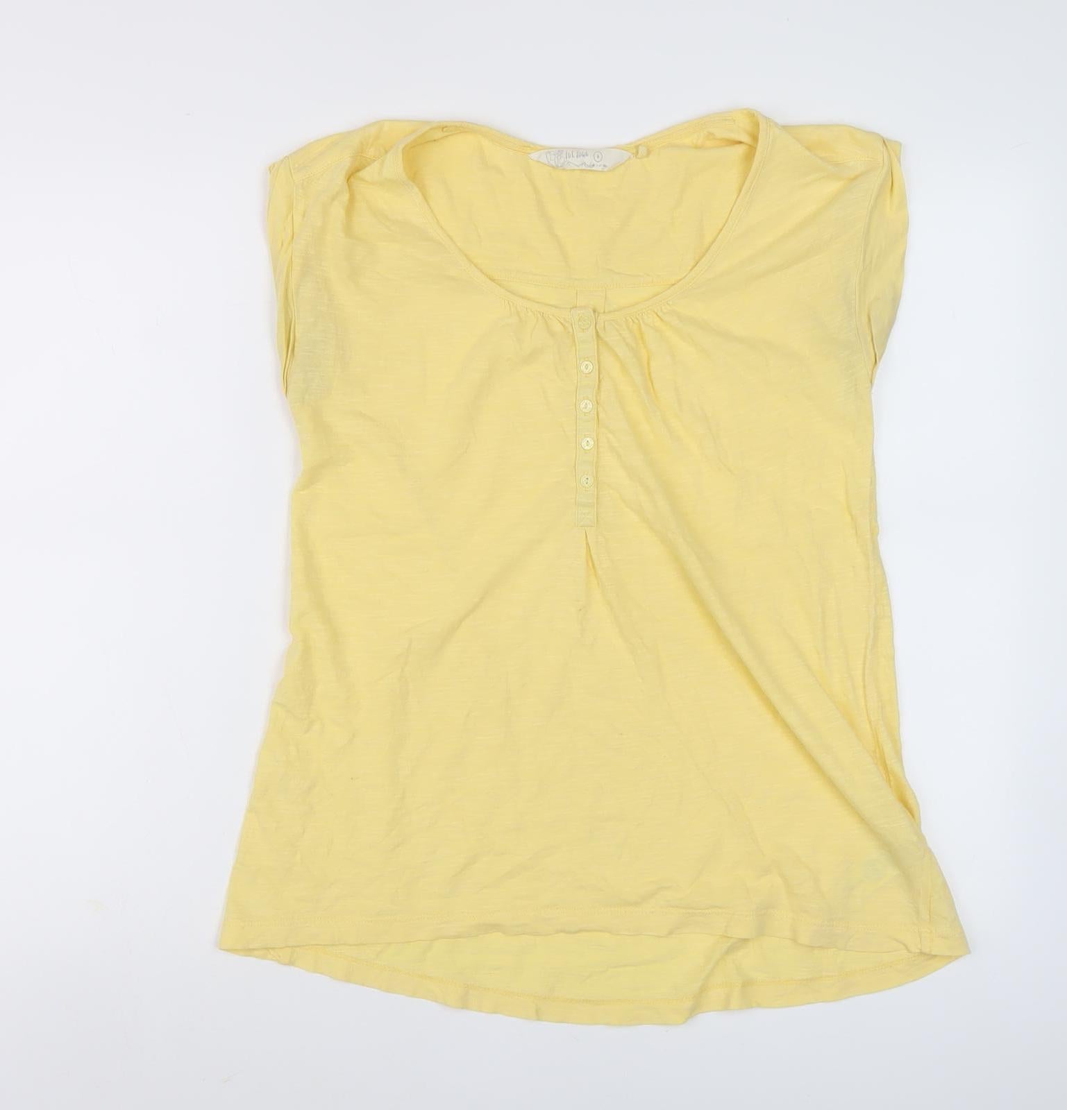 Elevate your casual wardrobe with this cheerful yellow Henley T-shirt by Fat Face, perfectly designed for women who appreciate style and comfort. Made from premium cotton jersey fabric, this top assures a soft feel and ultimate breathability, making it an ideal choice for warm spring and summer days. Its solid pattern and regular fit offer a versatile look that easily pairs with jeans or shorts for a laid-back day out or a casual meet-up.This basic yet stylish tee stands out with its distinctive Henley neckline, featuring a row of classic buttons that add a subtle accent to the simple yet elegant design. The cap sleeves contribute to a relaxed and breezy silhouette, enhancing your wearing comfort without compromising on style.Crafted in a regular size 8, this top meets the demands of a fashion-savvy woman who values quality and practicality. Its machine-washable cotton material ensures easy care, promising to maintain its bright yellow hue and shape wash after wash.Renowned for its quality, the Fat Face brand reflects a fun and adventurous spirit, and this Henley T-shirt is no exception. Ideal for a casual occasion, its solid design makes it a perfect companion for your day-to-day adventures, while the excellent condition with only light wear ensures it will be a favorite in your wardrobe for seasons to come.Enhance your closet with this vibrant, easy-going top that seamlessly blends comfort and style. Whether you're dressing for a day at the park or a casual gathering, this Fat Face Henley tee is sure to capture attention while keeping you comfortably stylish. Don't miss the chance to add this versatile piece to your collection today!