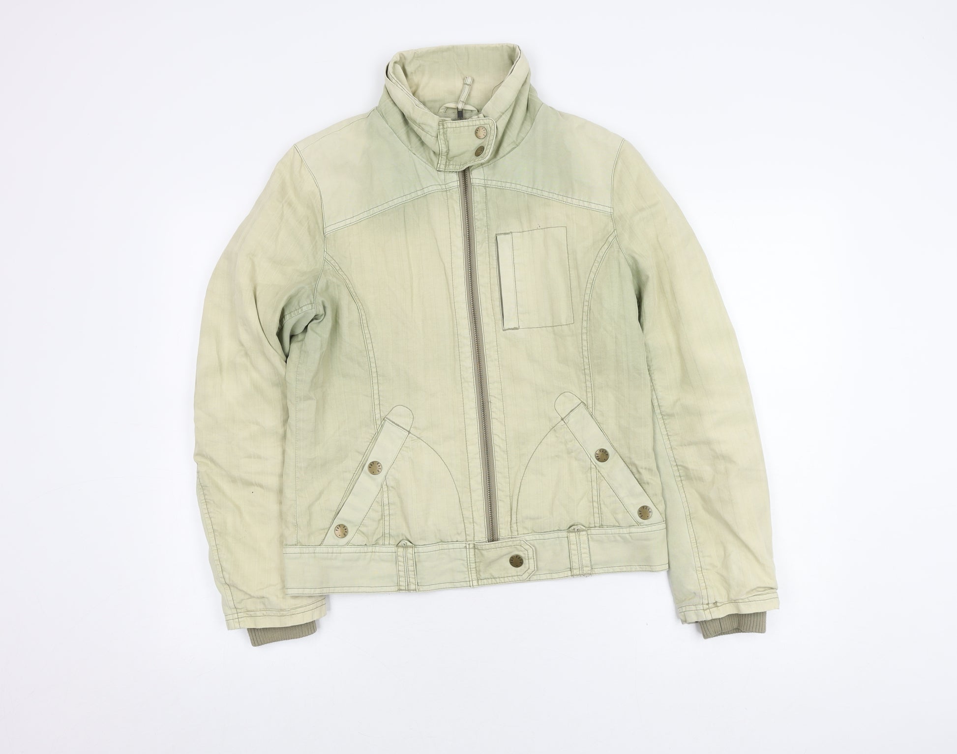 Elevate your casual wardrobe with this charming Fat Face beige jacket, designed specifically for women who appreciate a blend of comfort and style. Perfect for autumn and spring, this mid-length, regular fit jacket features a classic floral pattern that adds a touch of nature-inspired elegance to any outfit. Crafted from premium cotton with a soft, twill weave, the jacket ensures not only sophistication but also a breathable comfort ideal for transitional weather. The polyester lining and insulation provide warmth without compromising style. Featuring a reliable zip closure complemented by buttons, this jacket supports practicality, keeping you secure and comfortable in any casual setting. Additionally, the long sleeves and the lined interior add an extra layer of warmth, making it perfect for a variety of outdoor activities. With accents such as buttons enhancing its classic design, this garment embraces simplicity and functionality while maintaining a chic aesthetical appeal. The colour beige allows for versatile styling, easily pairing with a range of colours and accessories in your wardrobe. Designed for regular sizing, it ensures a flattering fit for wearers. Despite its exquisite look, the jacket boasts machine-washable material, ensuring that care and maintenance are as effortless as wearing it. Whether heading out for a leisurely stroll in the park or engaging in casual social gatherings, this Fat Face jacket promises style and comfort in equal measure. In excellent condition, it's a must-have addition to your clothing collection, offering timeless wear that aligns with today’s fashion standards.
