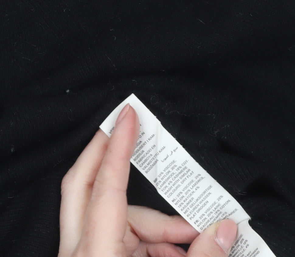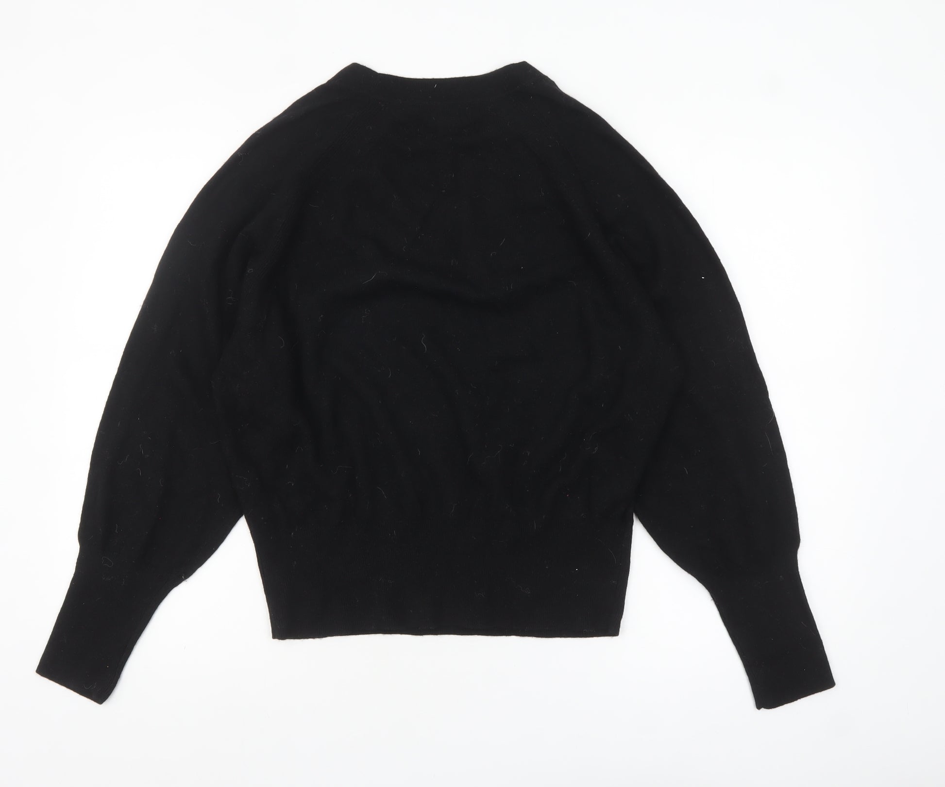 Women's Black Crew Neck Wool Blend Jumper Size 16