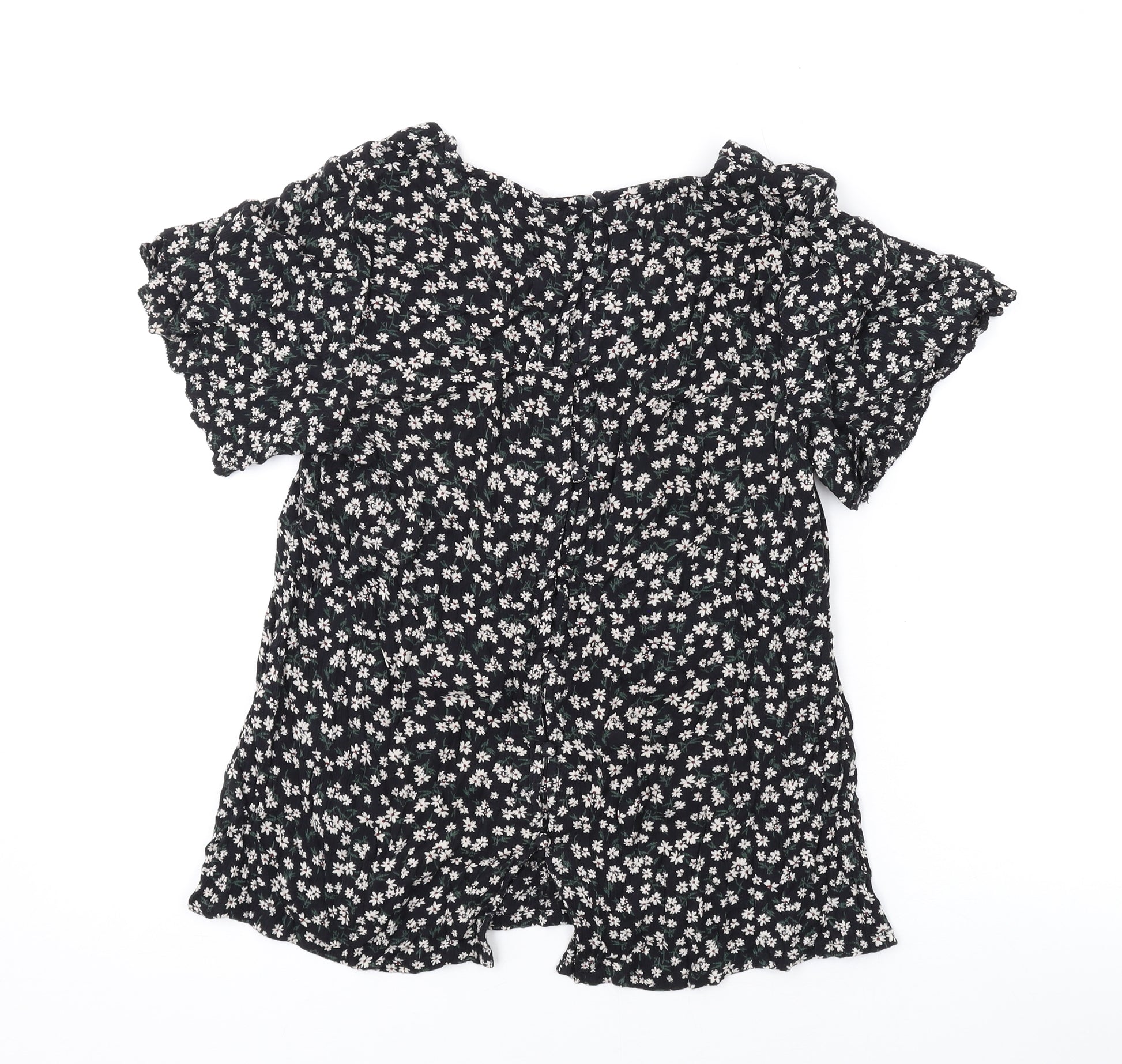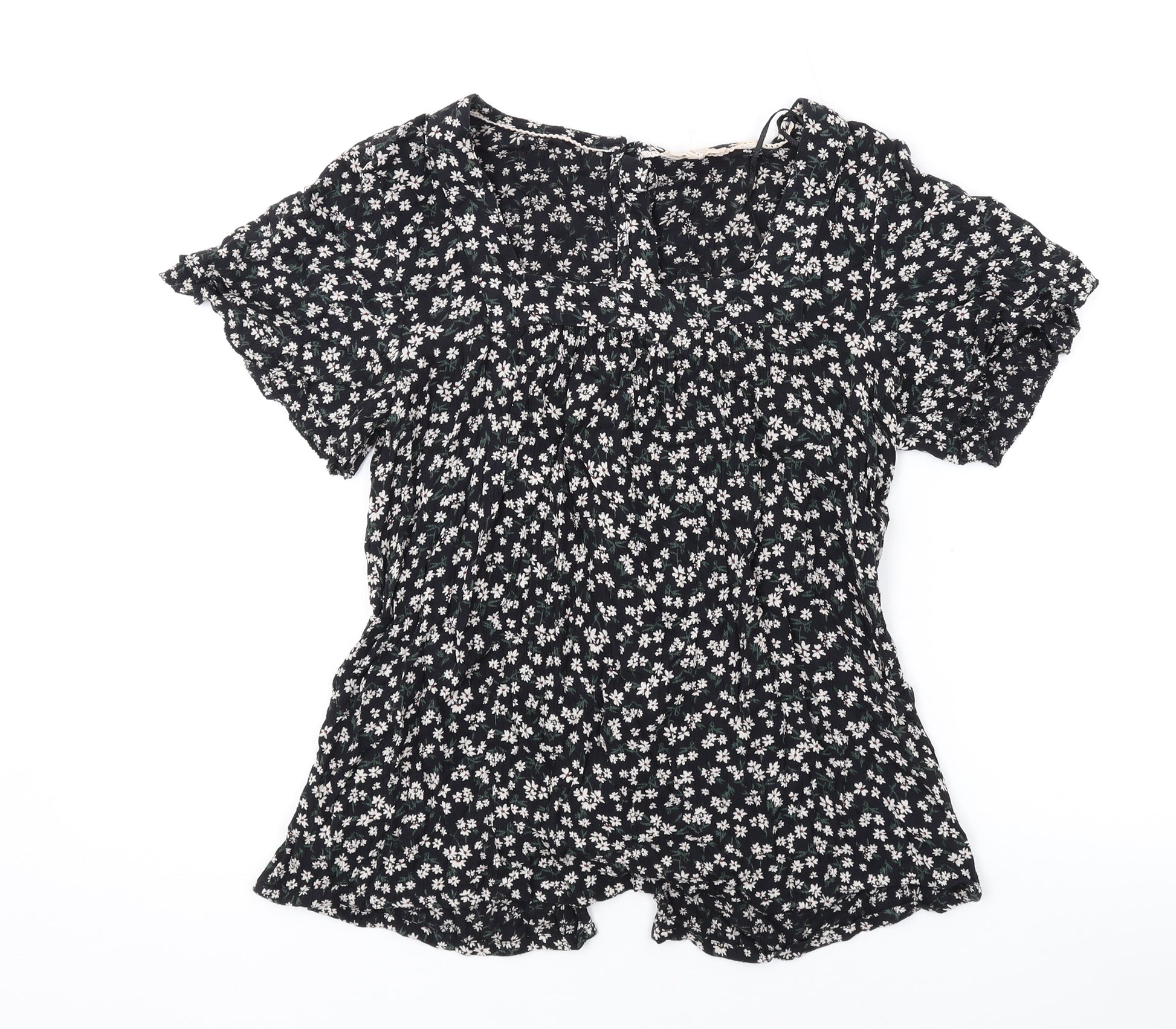 Womens Black Floral Viscose Basic T-Shirt Size 8 Round Neck