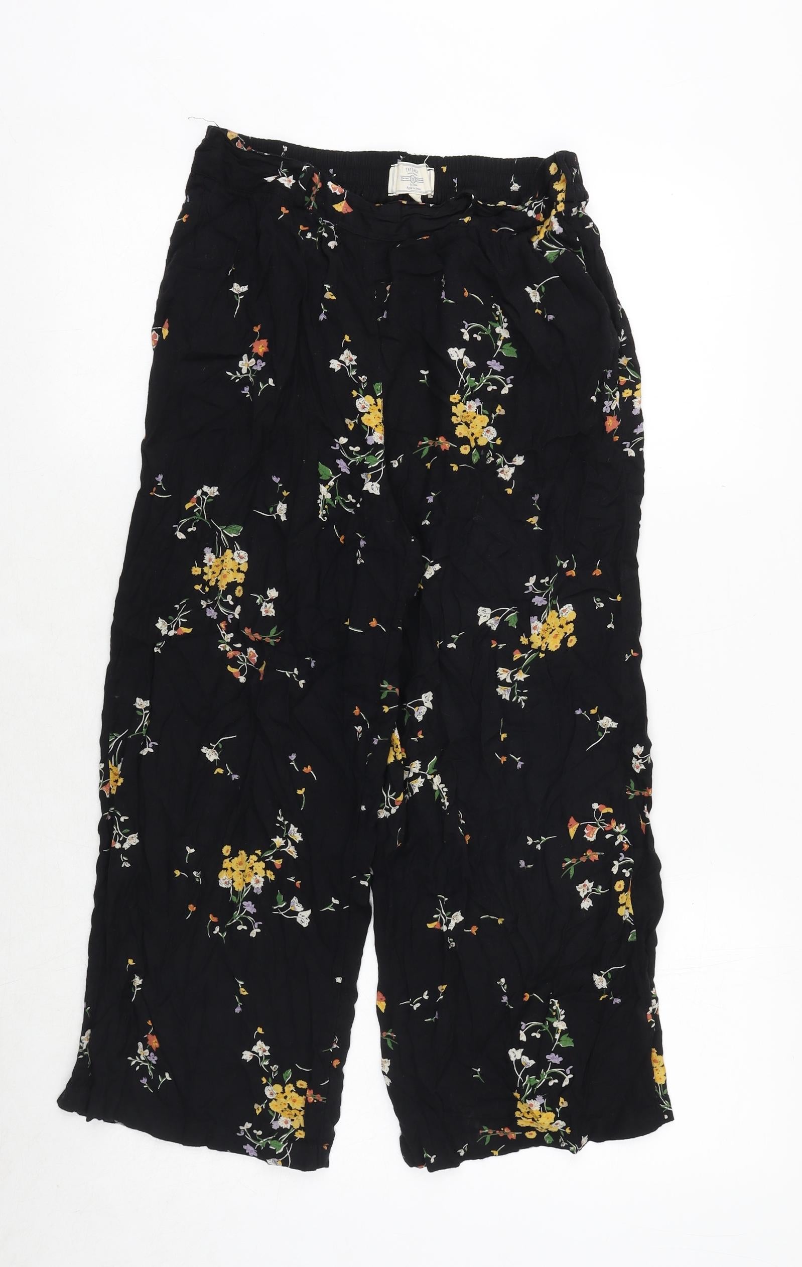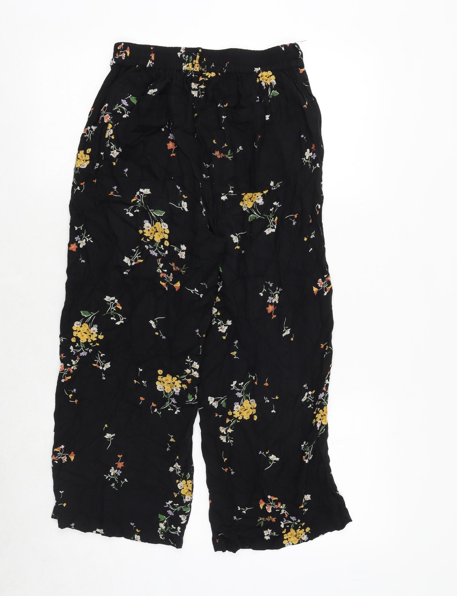 Womens Black Floral Viscose Trousers Size 8 Regular