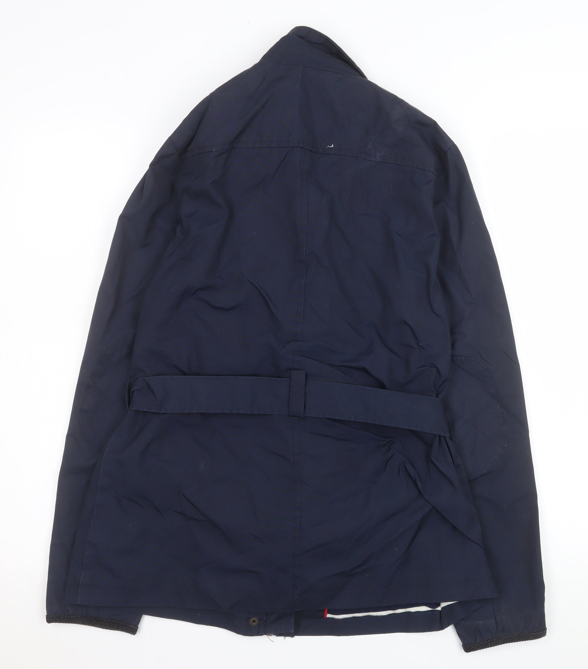 Step out in timeless British style with this Fat Face women's blue belted parka jacket in size 12. Designed for both comfort and practicality, this mid-length coat offers a flattering regular fit that's perfect for everyday wear. Made from a quality blend of polyester and cotton twill fabric, it provides durability, breathability, and lightweight weather resistance, making it ideal for cooler autumn and spring days, as well as layering through the winter. The jacket features a stylish belted waist for a flattering silhouette, along with multiple pockets for functionality and convenience. Its distinctive button and zip front closure ensure secure fastening, while the contrasting corduroy trim and brass buckle accents add a touch of rustic charm. The fully lined interior provides comfortable wear and reliable warmth, with cotton and polyester lining materials that enhance softness and insulation. Displaying Fat Face’s hallmark of casual outdoor fashion, this classic blue parka embodies both practicality and understated elegance, ideal for countryside walks, city commutes, or relaxed weekend outings. Versatile enough for casual, travel or workwear occasions, this jacket seamlessly pairs with jeans, boots, or a cosy scarf for a polished seasonal look. In excellent pre-owned condition, showing only minimal signs of wear and no defects, it’s a dependable addition to any wardrobe. Fat Face’s reputation for attention to detail and quality fabrics ensures this piece will remain a favourite year after year. Functional, fashionable, and built for comfort – this navy belted jacket will quickly become a go-to outerwear essential for transitional weather, offering effortless style and reliable performance wherever your day takes you.